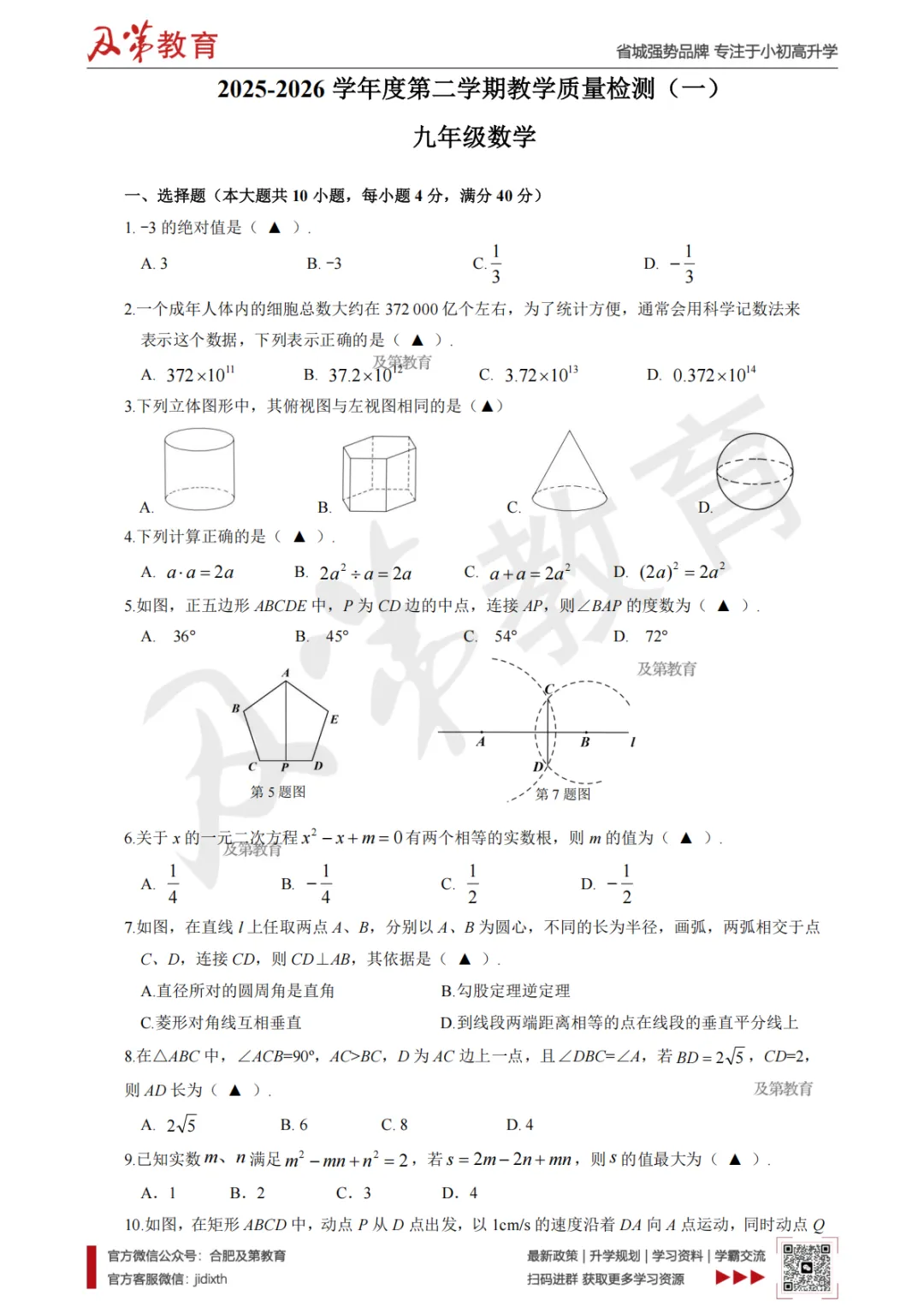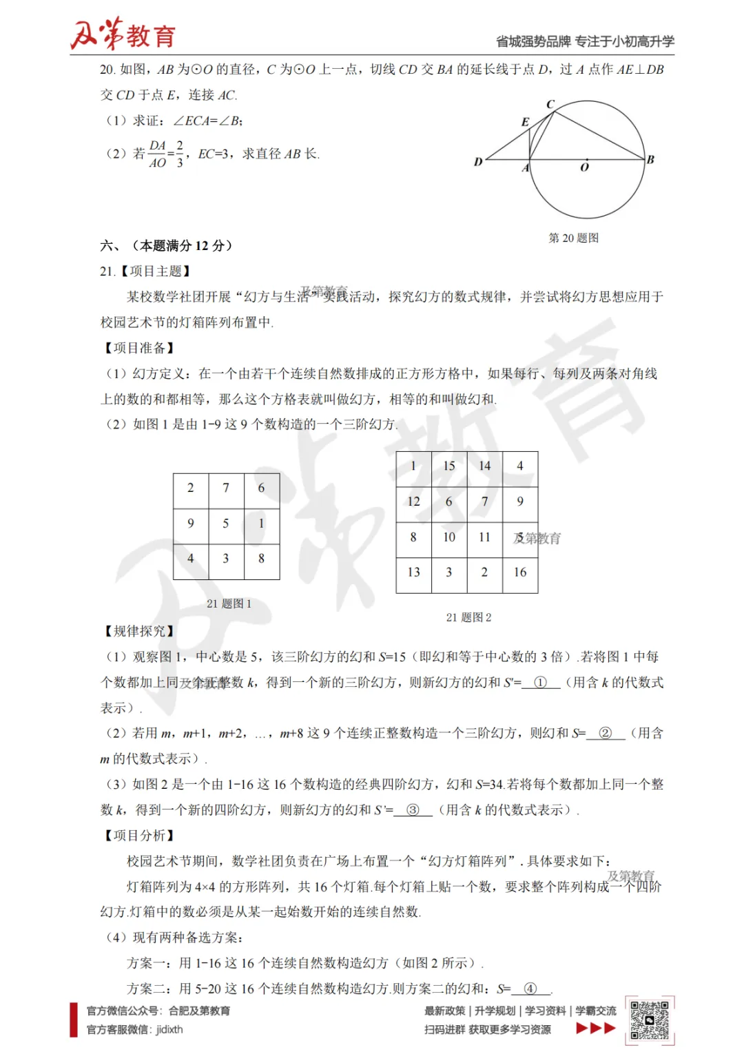 深高级集团和南外集团初三一模试卷+答案已出,速领!