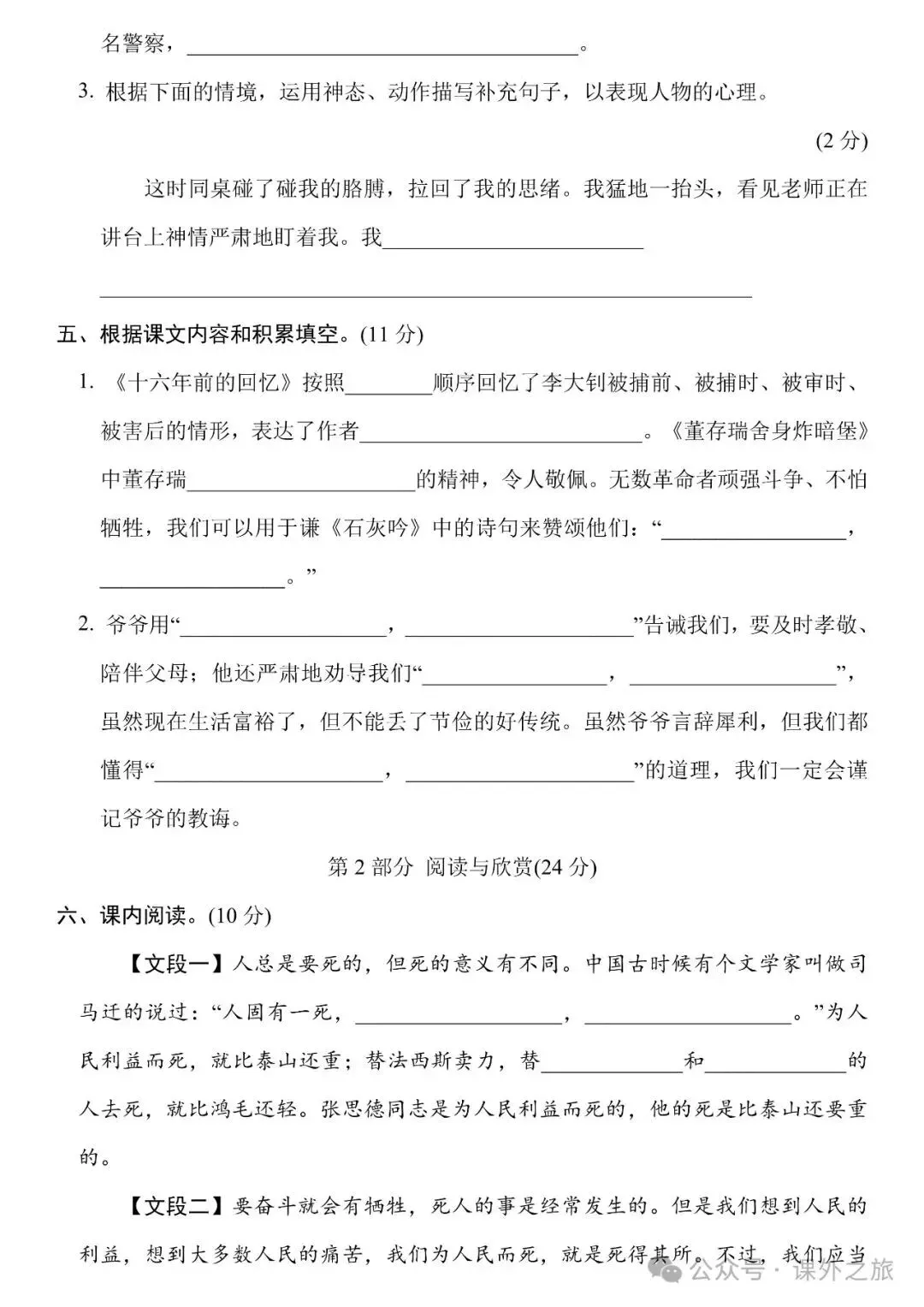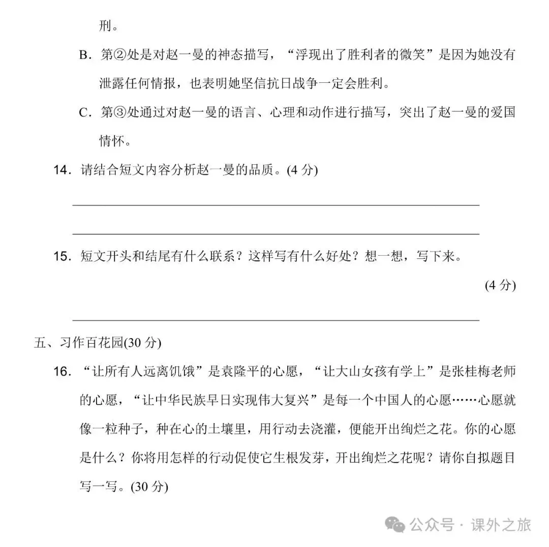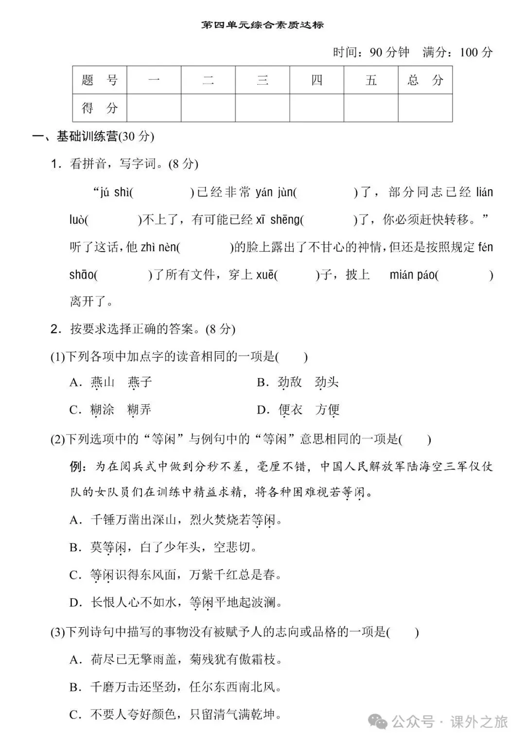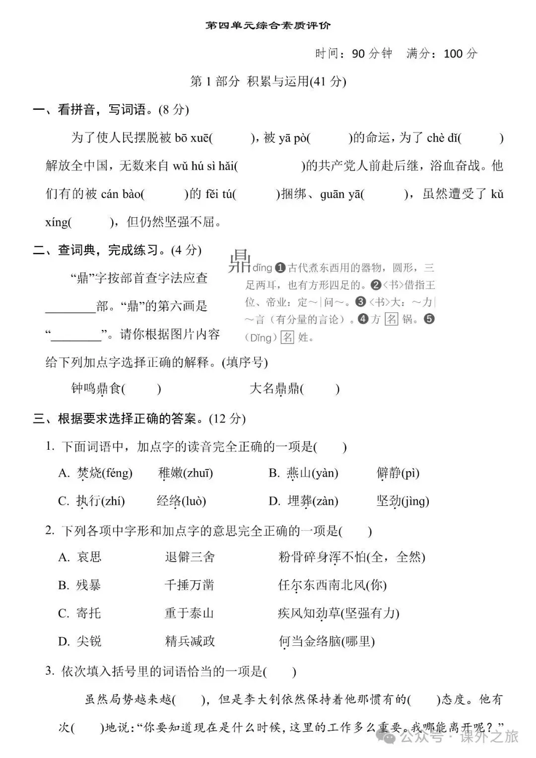 冬冬老师今天给大家整理了统编版语文六年级(下册)第四单元测试卷(含答案),请各位家长打印给孩子练练,更好的巩固所学的知识点!