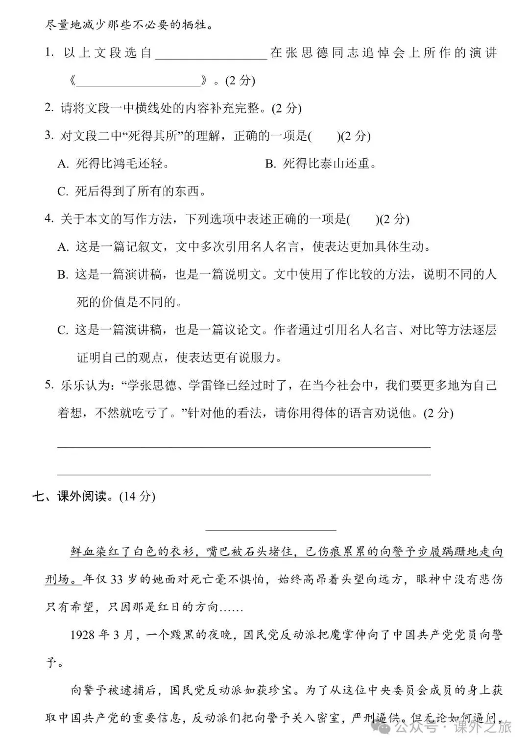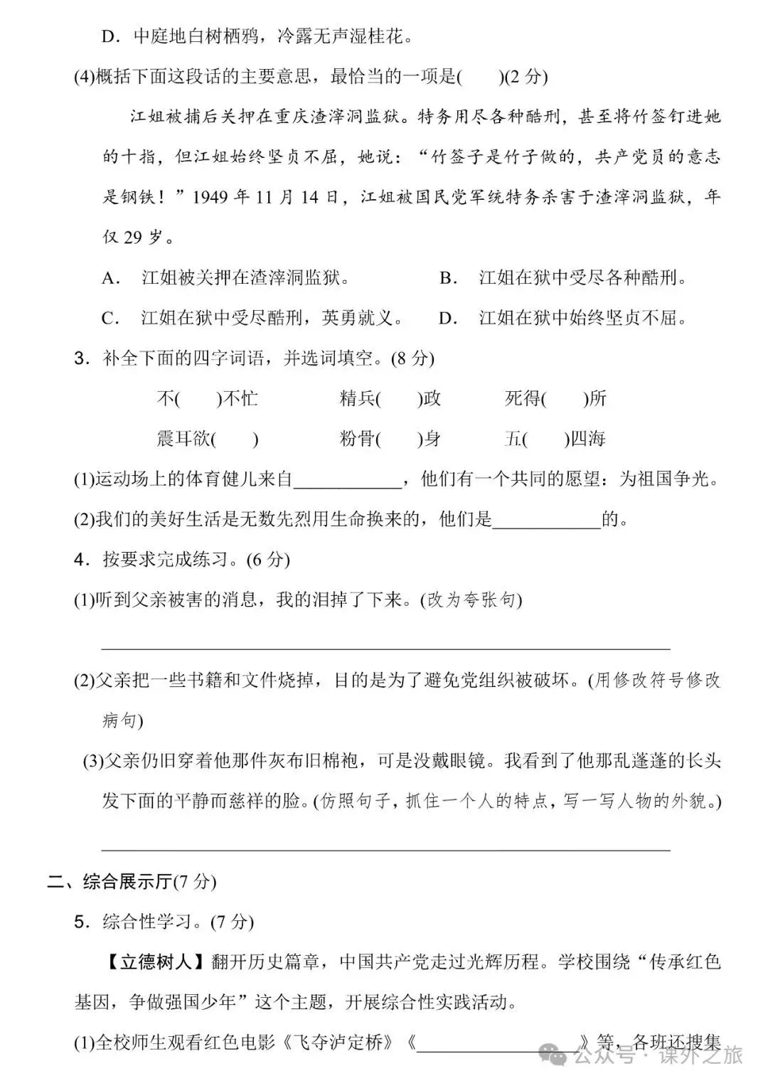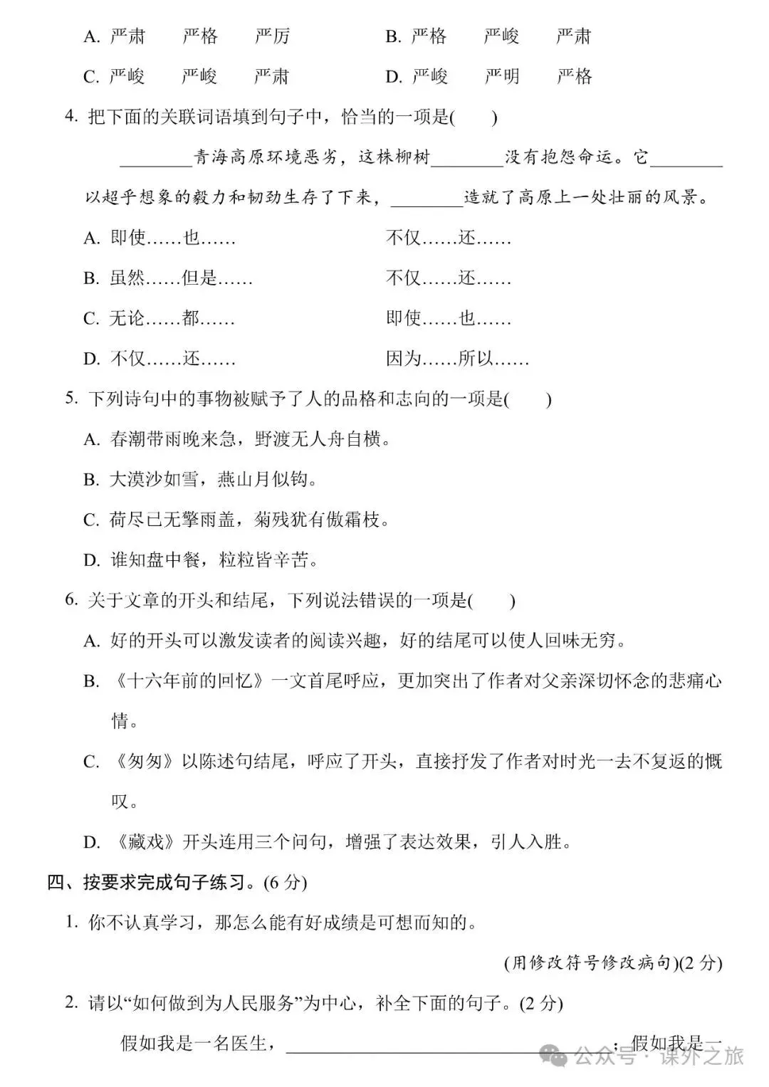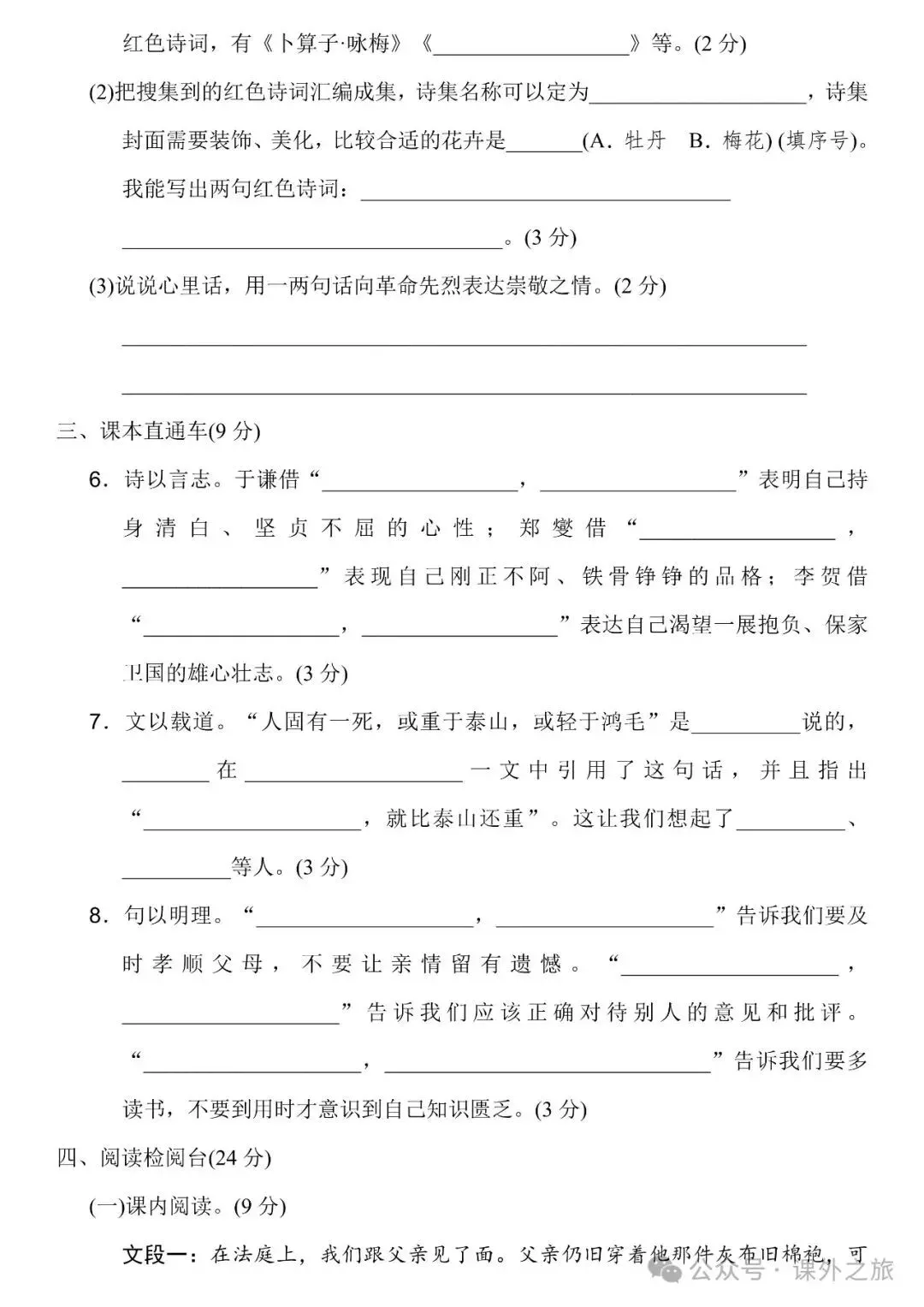 冬冬老师今天给大家整理了统编版语文六年级(下册)第四单元测试卷(含答案),请各位家长打印给孩子练练,更好的巩固所学的知识点!