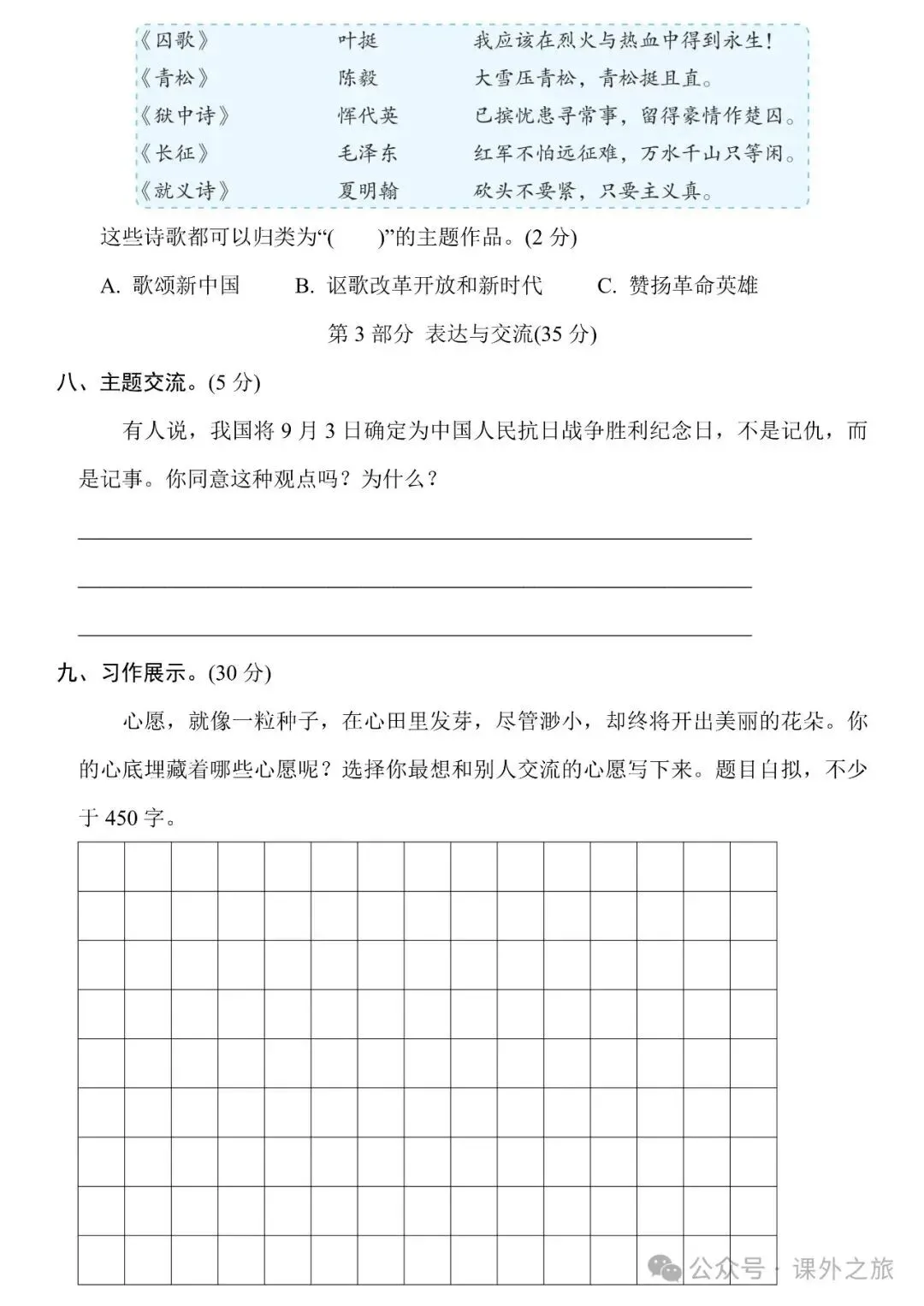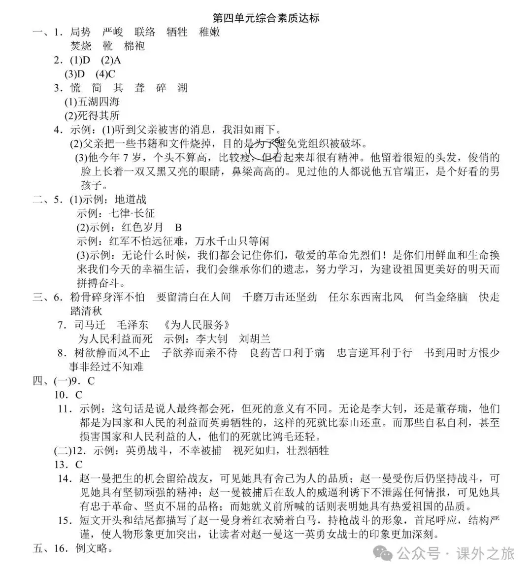 马诗/(唐)李贺 石灰吟/(明)于谦 竹石/(清)郑燮 11.十六年前的回忆 12.为人民服务 13.董存瑞舍身炸暗堡 综合性学习: 奋斗的历程 习作: 心愿 语文园地四 第四单元知识点 第四单元复习视频+课件 第四单元测试卷 期中测试卷