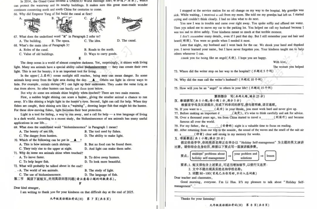文章篇幅有限,需要2026中考英语一模卷完整版的可留言!