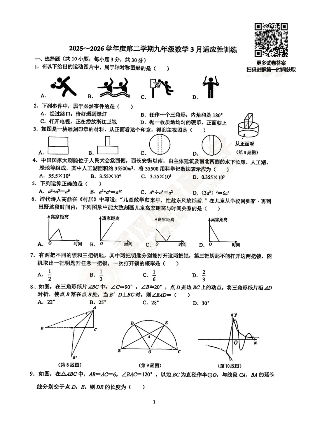 刚刚收集到【一初金雅9年级数学2025-2026下学期】3月月考试卷,如需完整版试卷及答案,扫码加入【9年级片区交流群】,即可免费获取,更多单元测、期中末、月考试卷持续更新中!