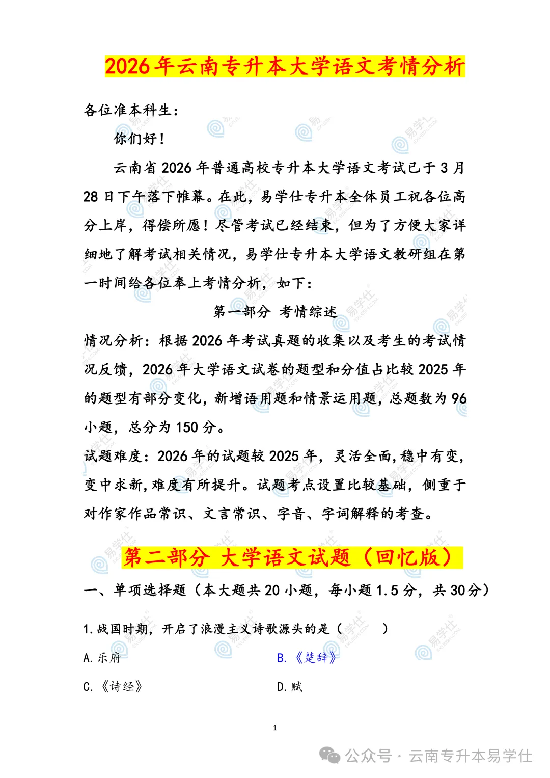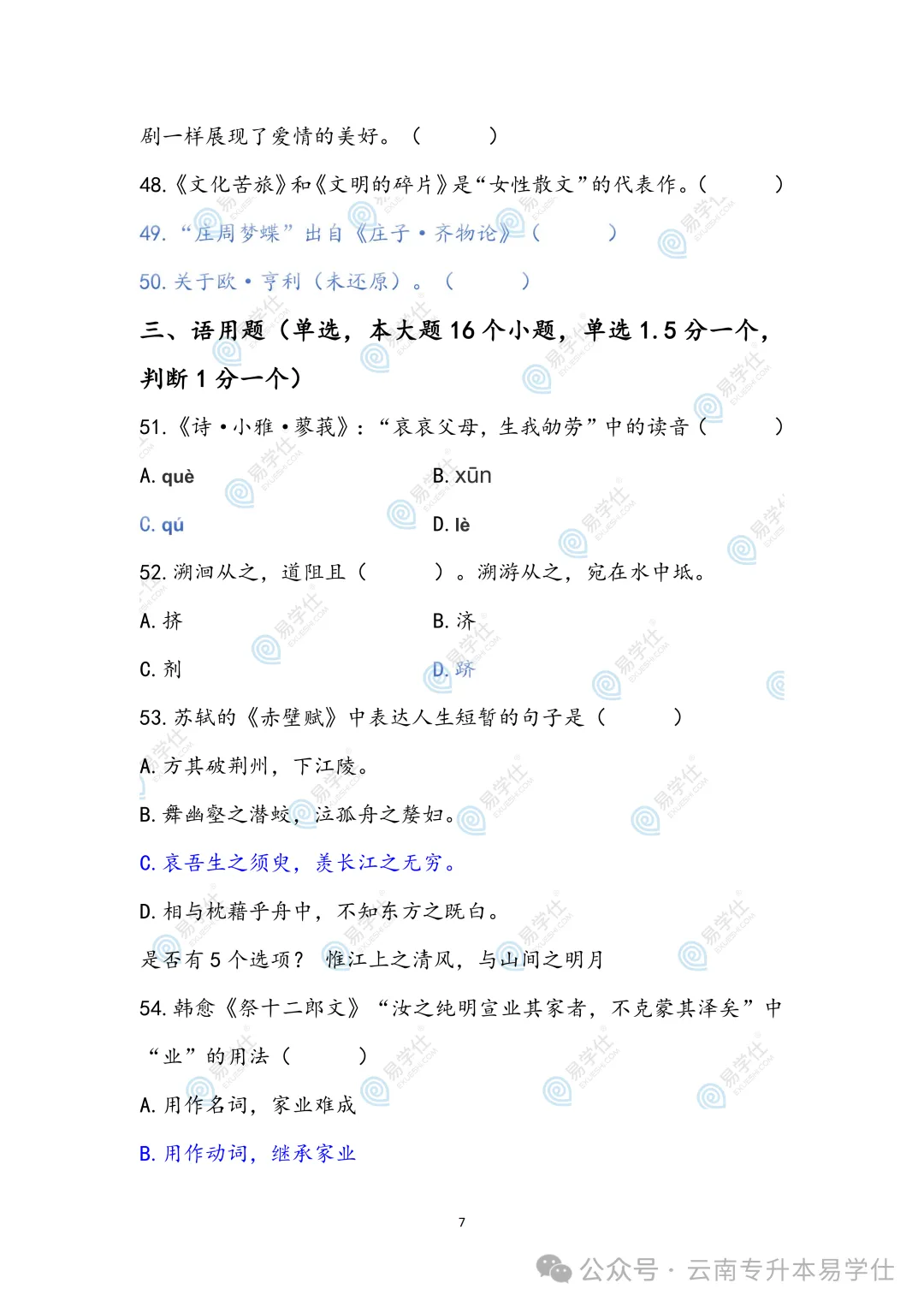 2027年、2028年云南专升本的同学可以提前参考今年的真题,了解题目考察方向和侧重。