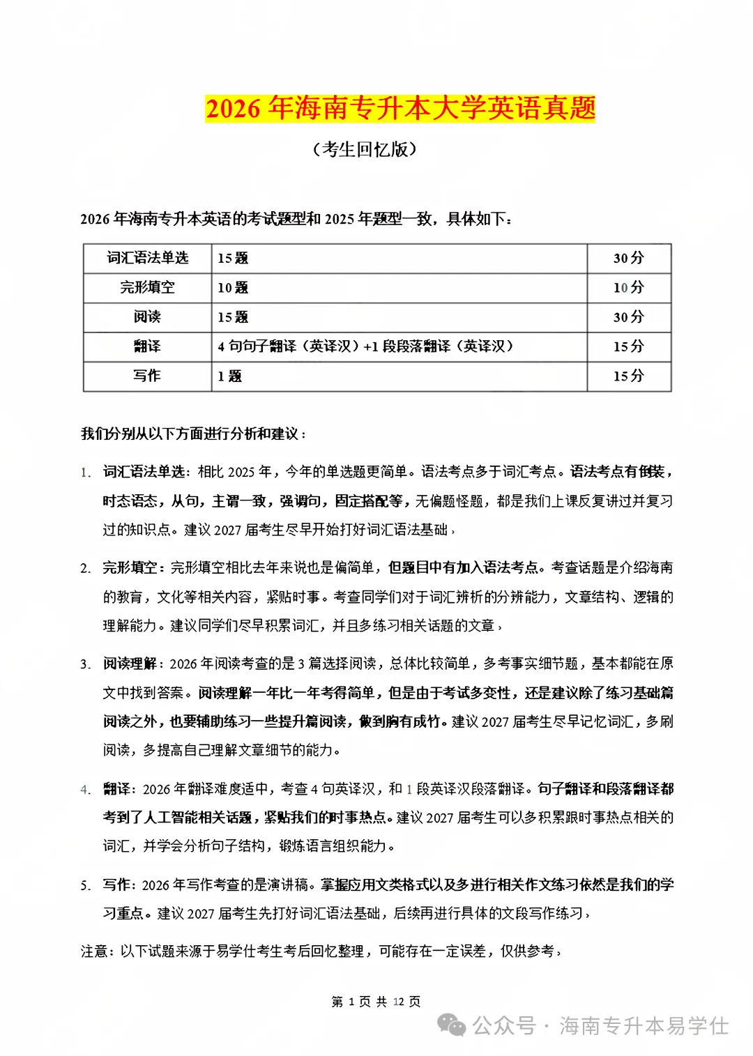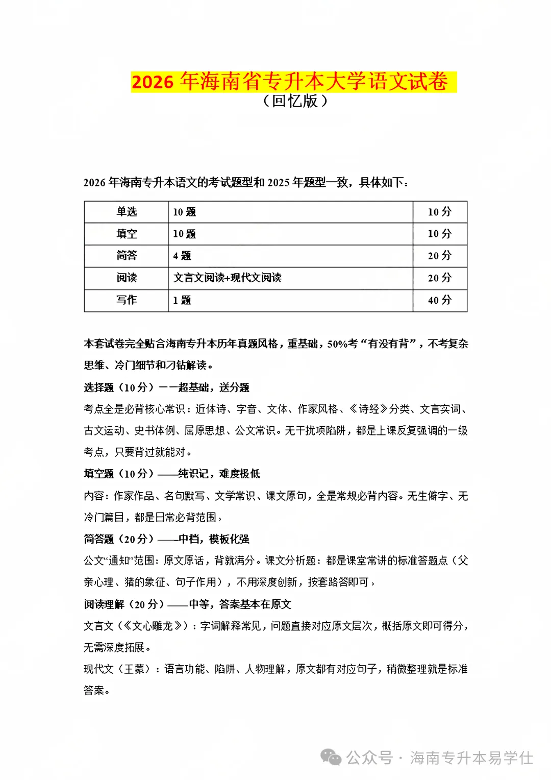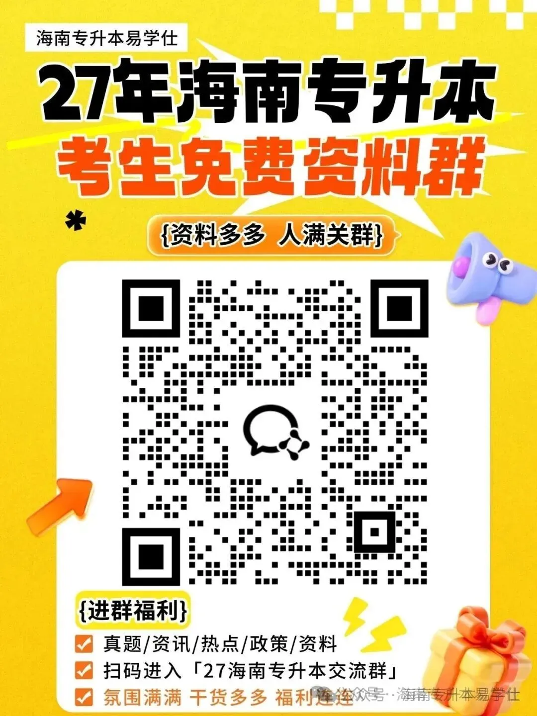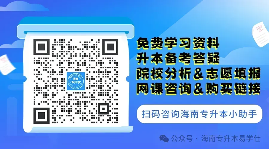 📍同学们可以点击关注【海南专升本易学仕】,凭关注截图可领取回忆版真题试卷及答案!!!