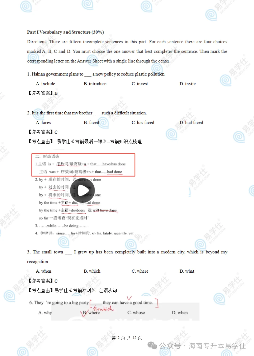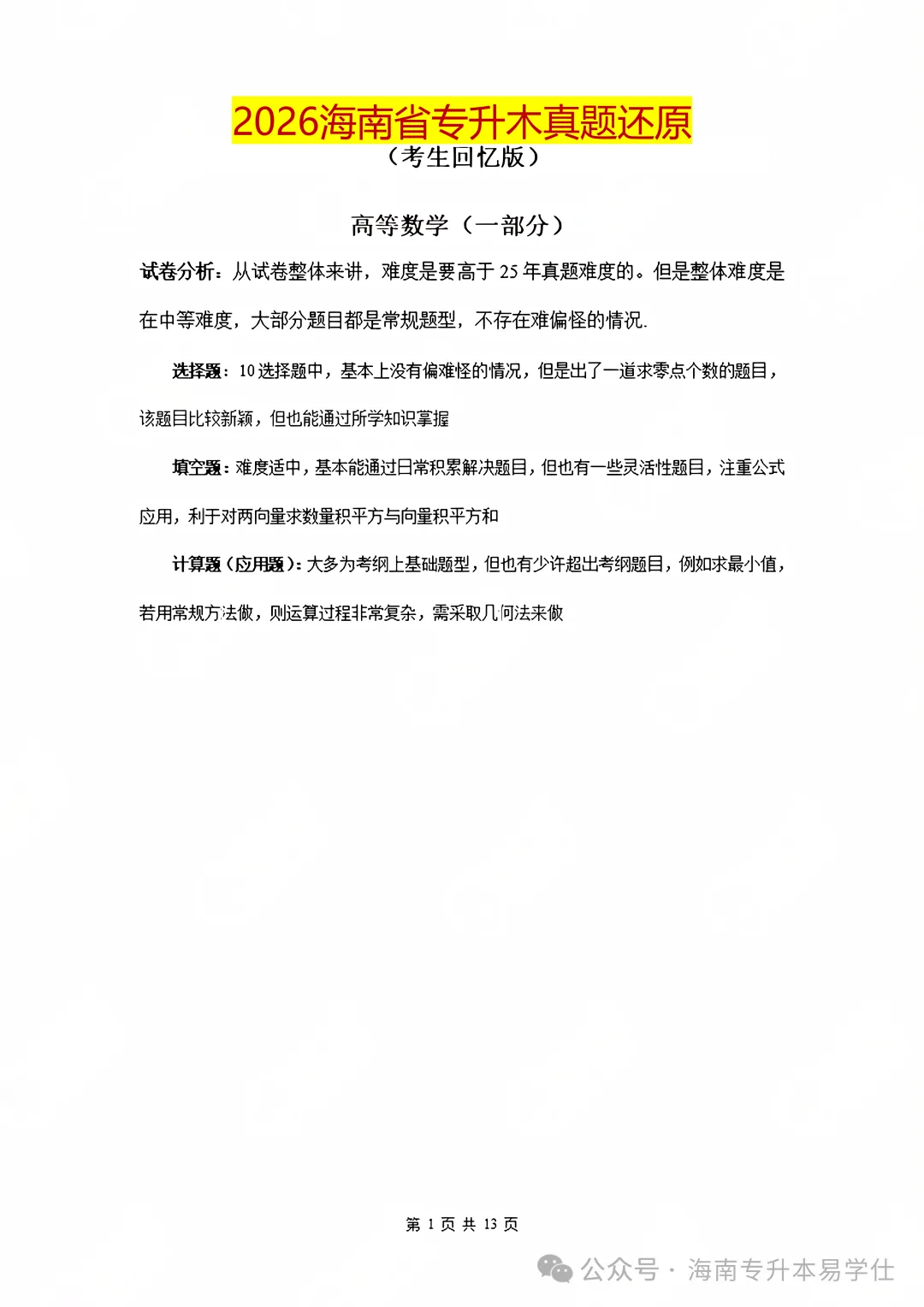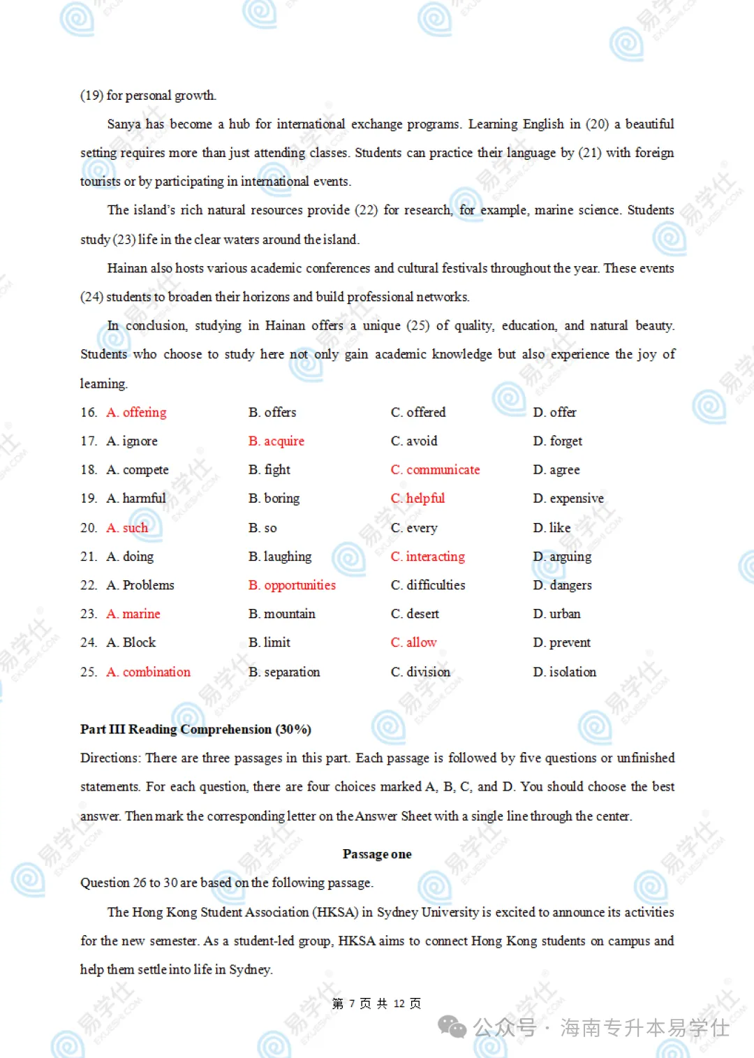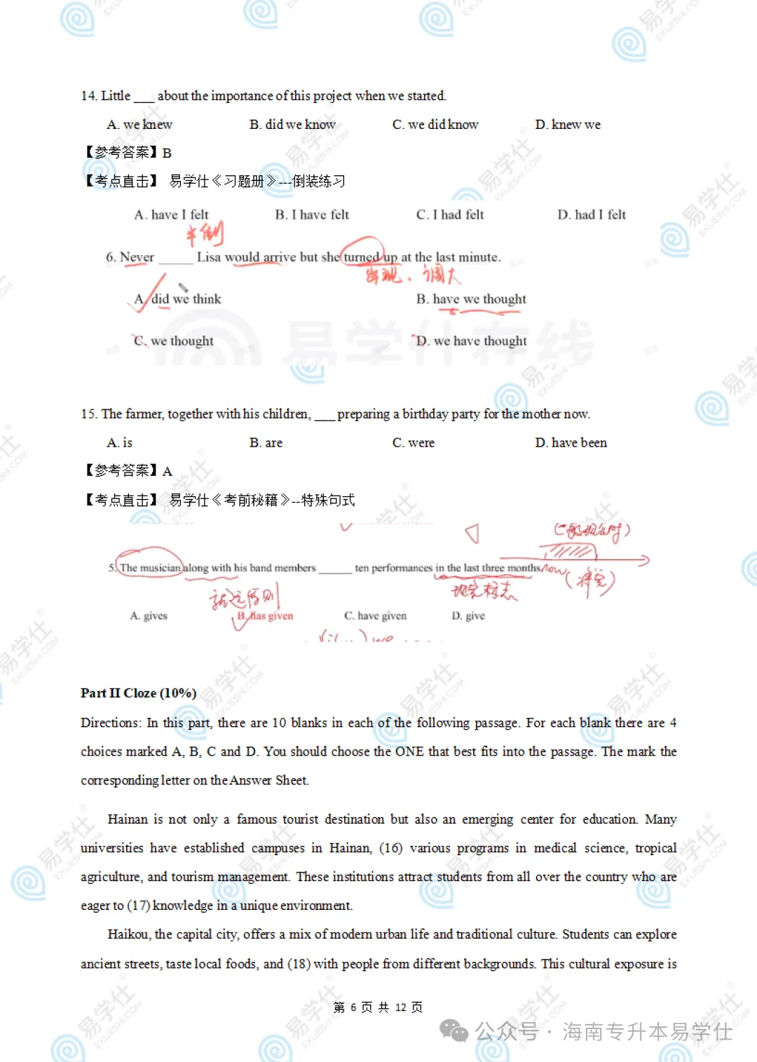 📍同学们可以点击关注【海南专升本易学仕】,凭关注截图可领取回忆版真题试卷及答案!!!