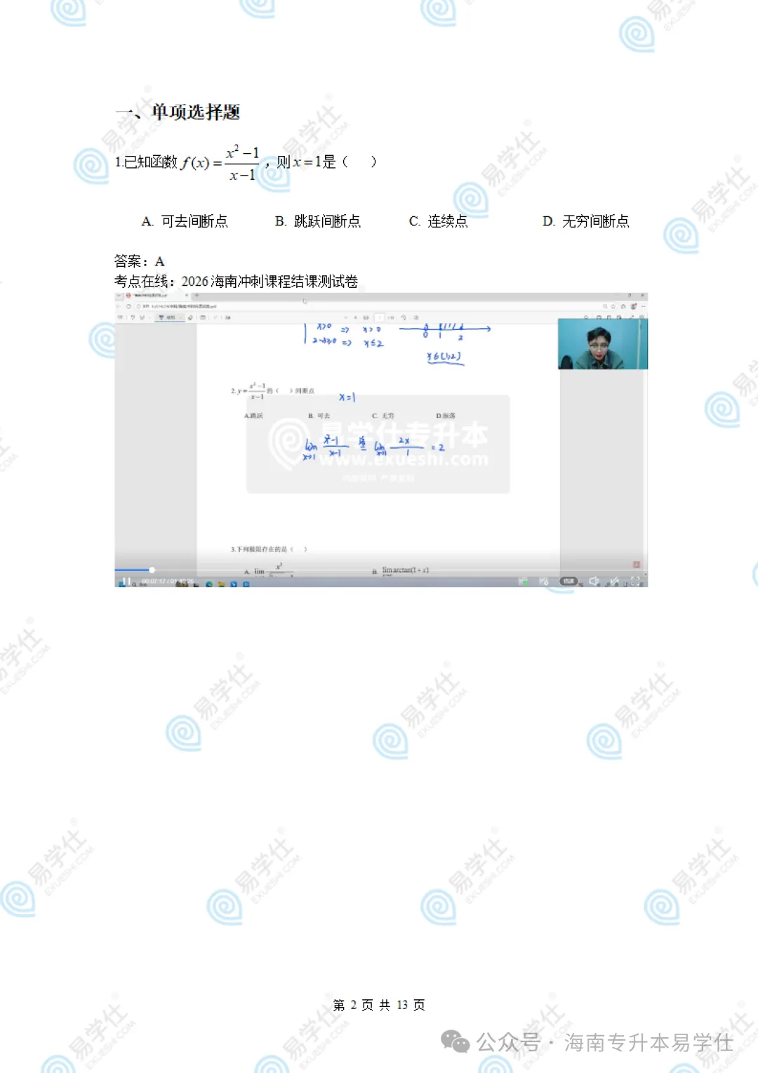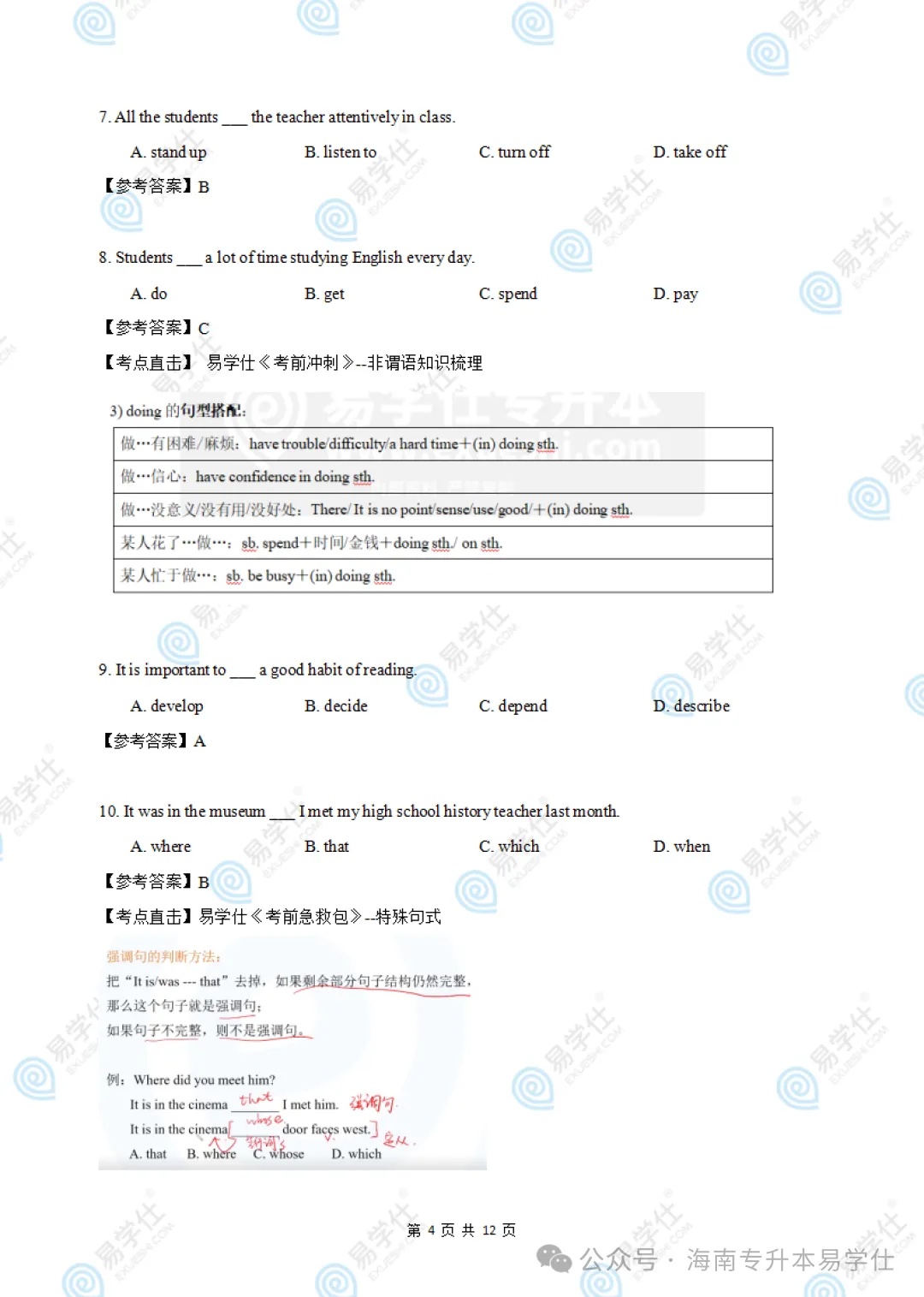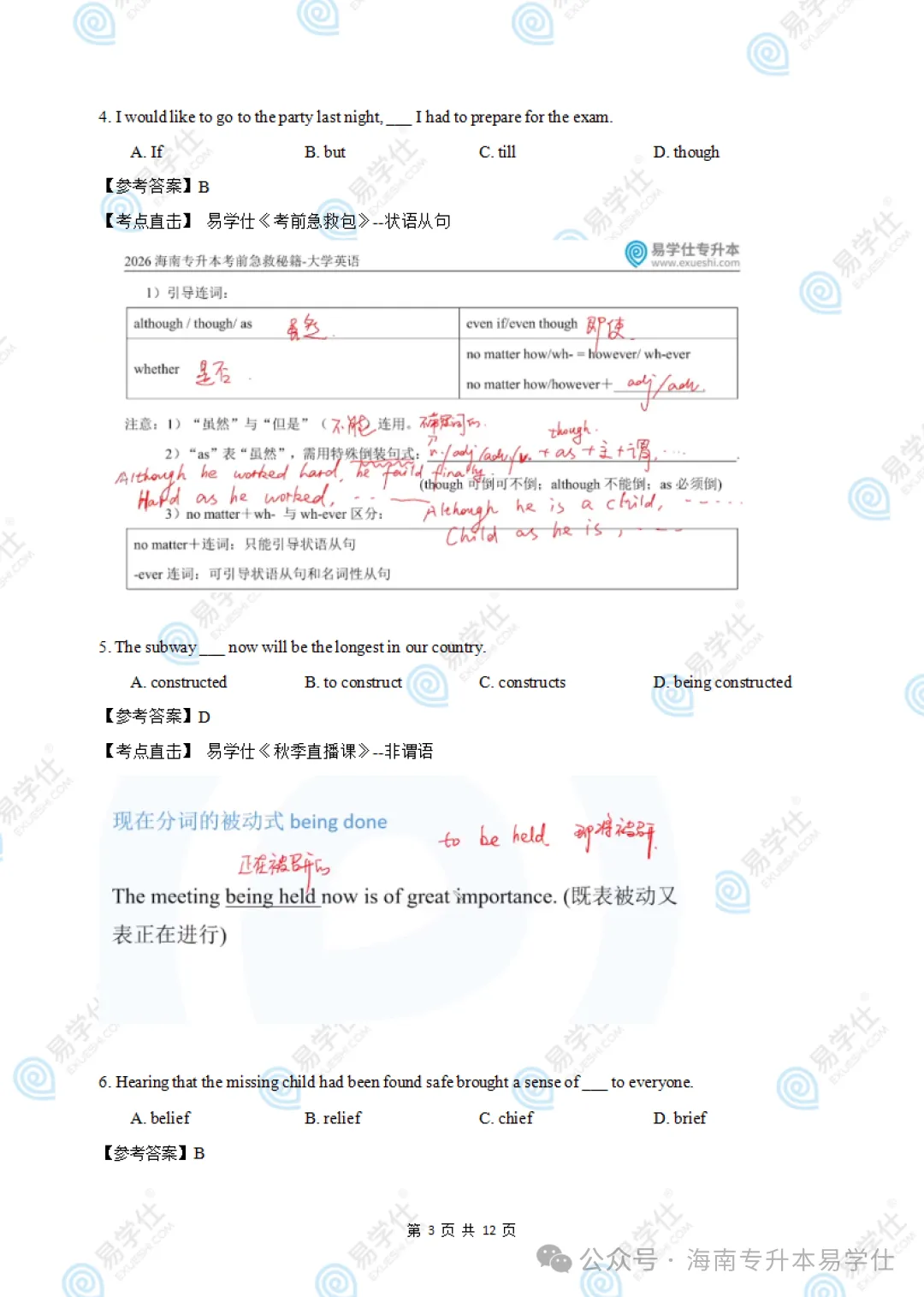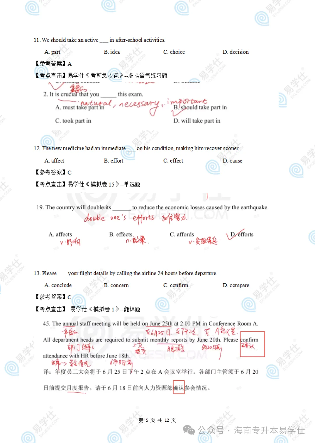 📍同学们可以点击关注【海南专升本易学仕】,凭关注截图可领取回忆版真题试卷及答案!!!