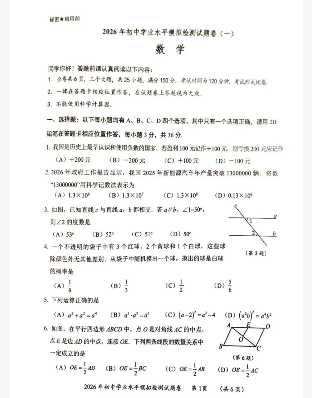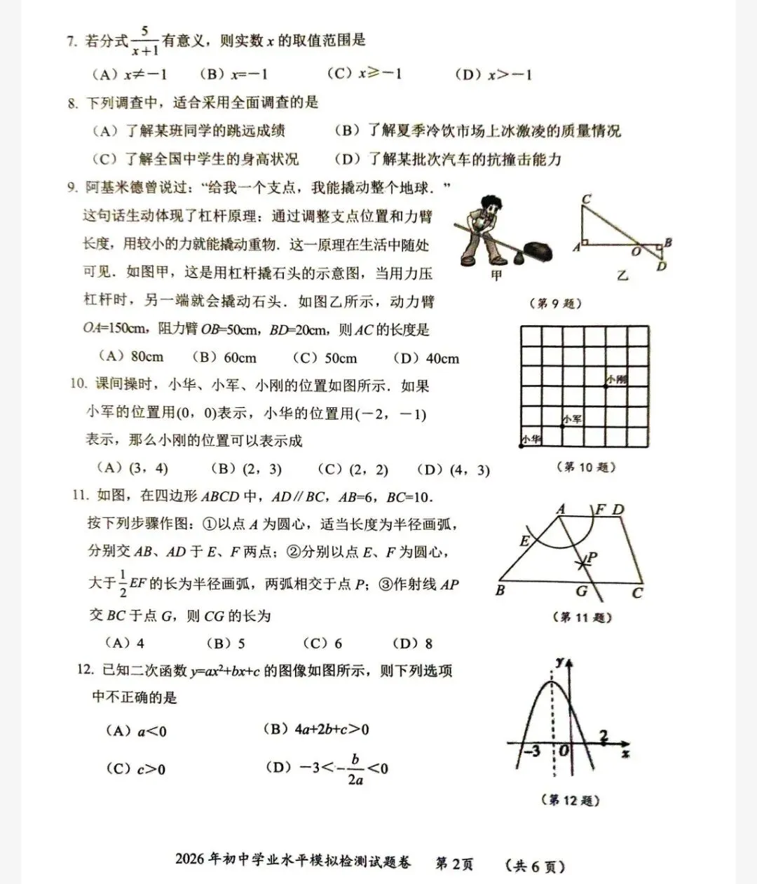最新二模数学+化学+物理试卷2026.3.31答案迟点更新……