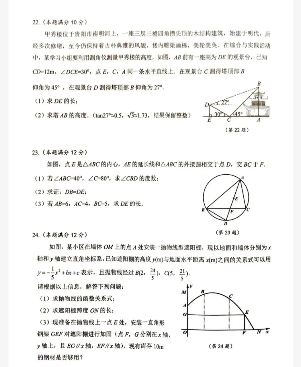 【试卷分享】2026年九年级下册数学毕业班适应性练习