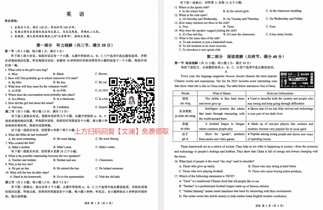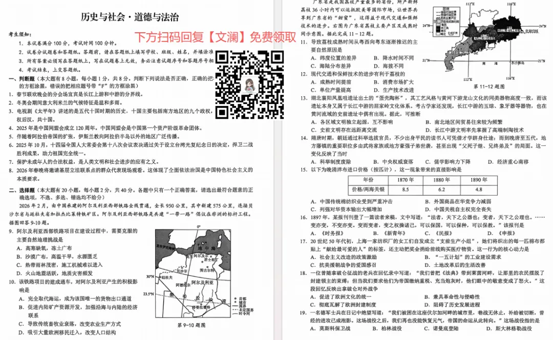 浙江省2026年初中学业水平考试钱塘甬真1号语文卷(含答案)