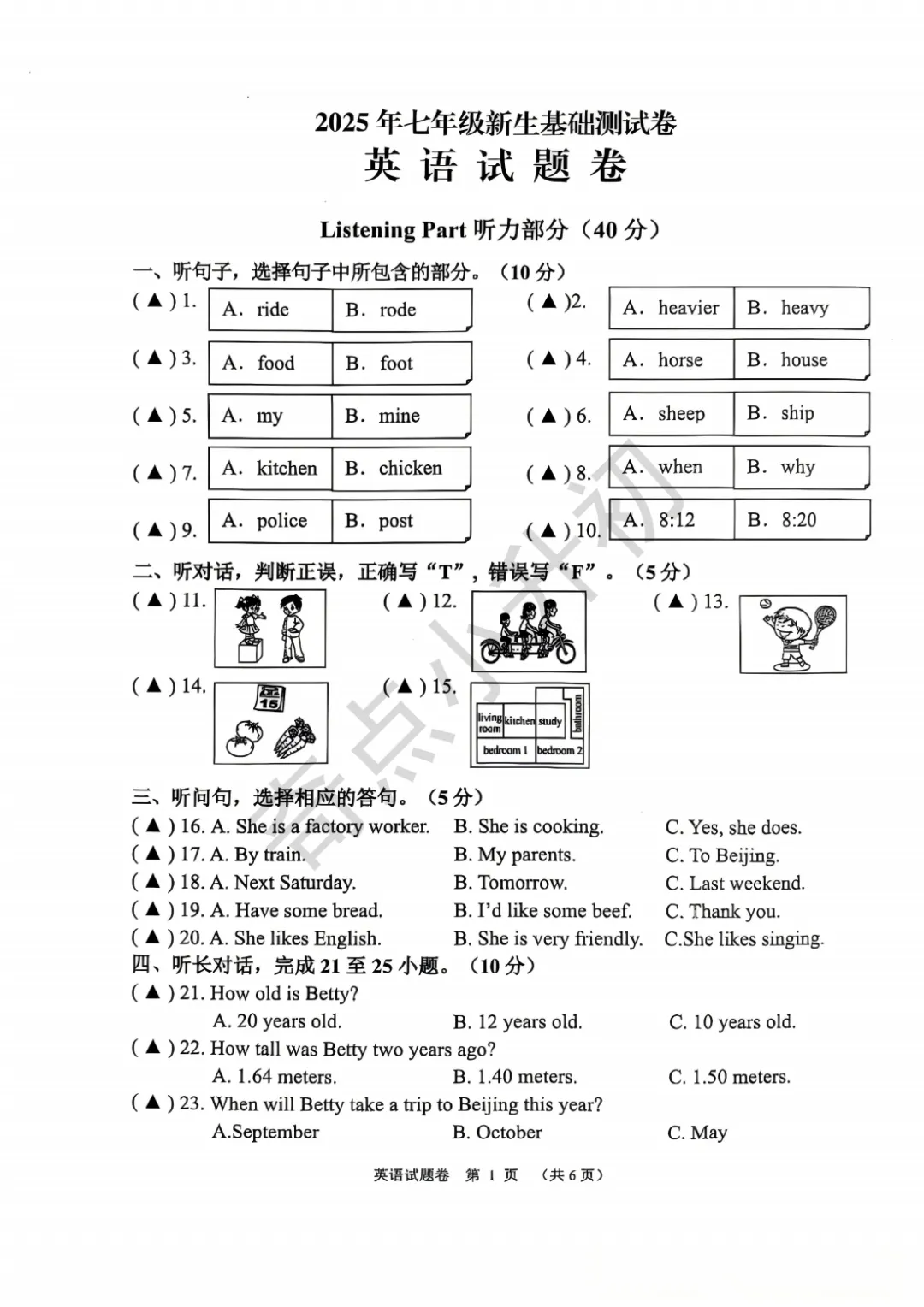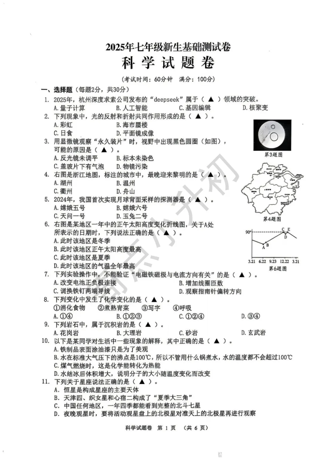 2025年浙江省七年级新生基础测试卷及答案解析