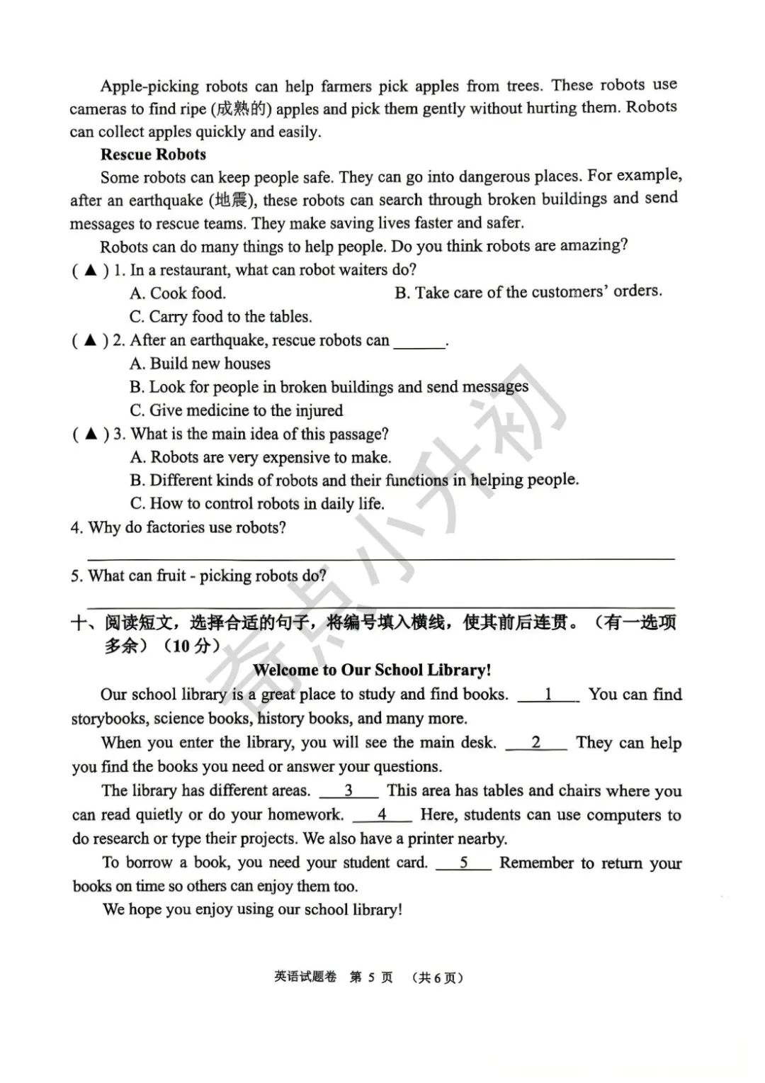 免费领 | 一至六年级语数英全套月考试卷