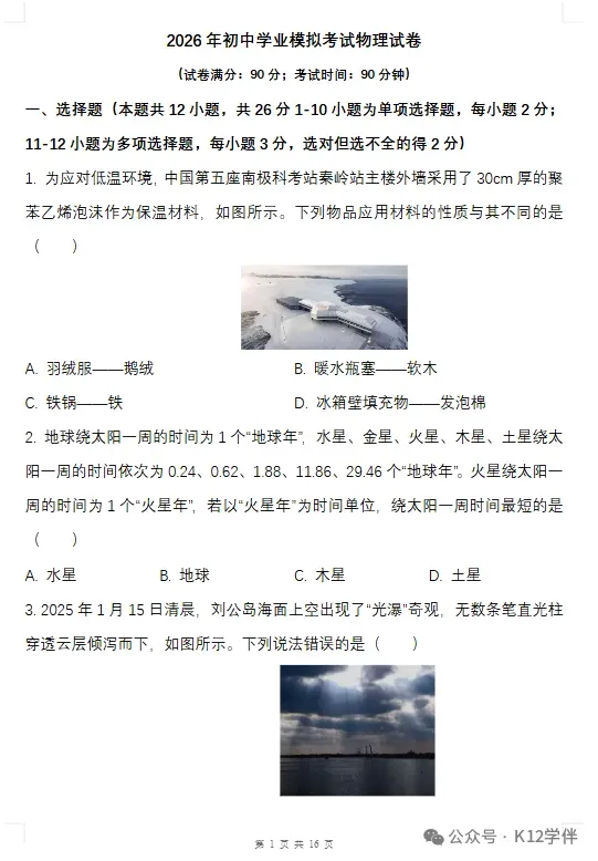 当前位置:首页>考研真题>2026学年初中学业模拟考试《物理试卷》(含答案)