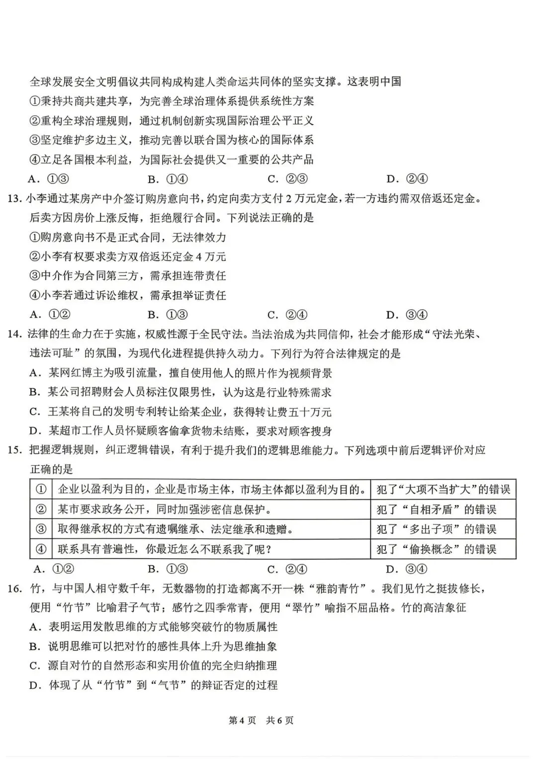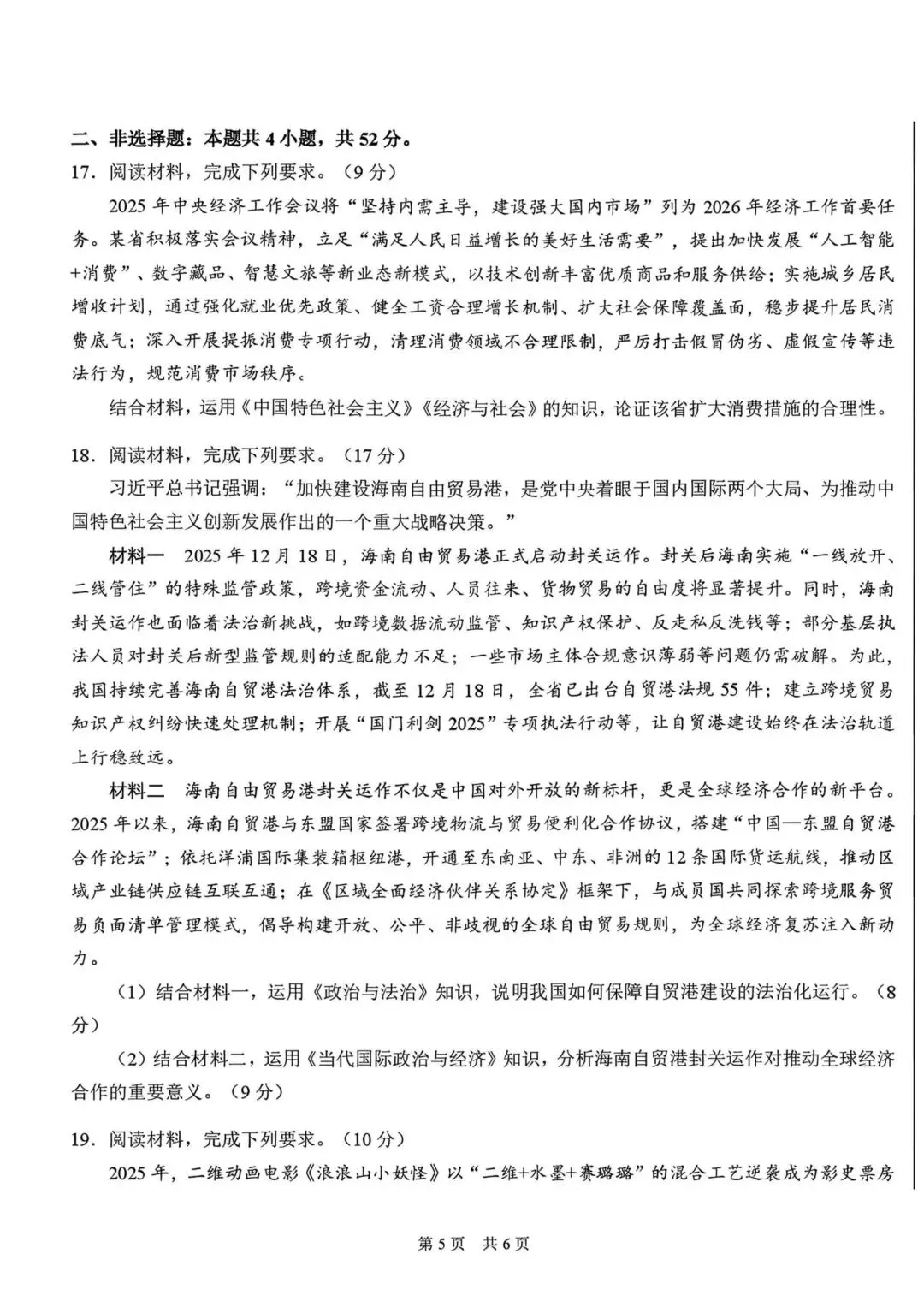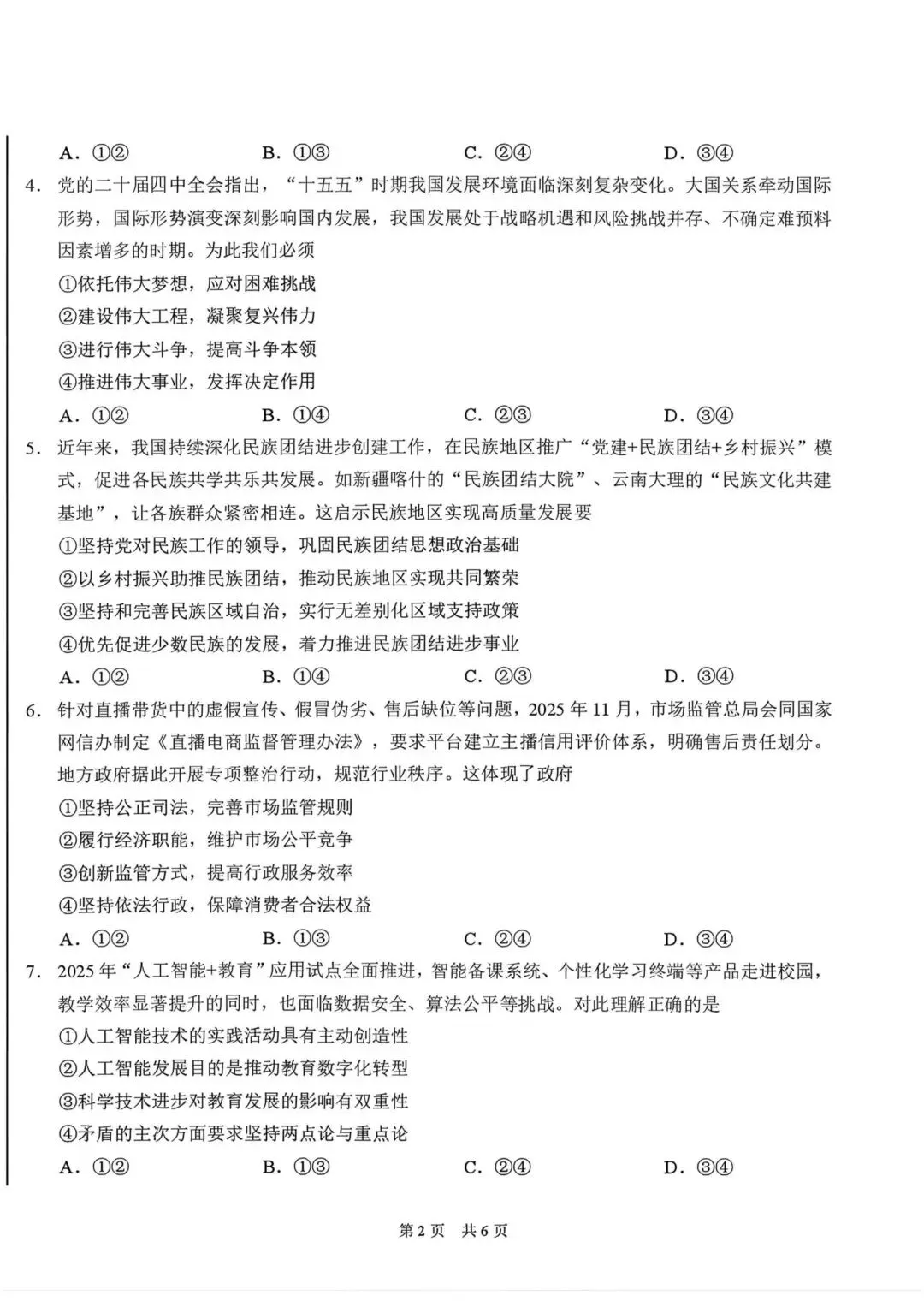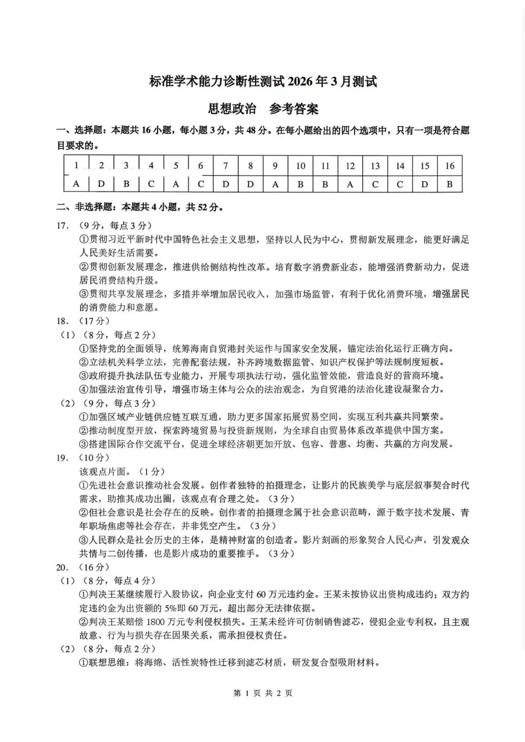 >【试卷】标准学术能力诊断性测试2026年3月政治试卷