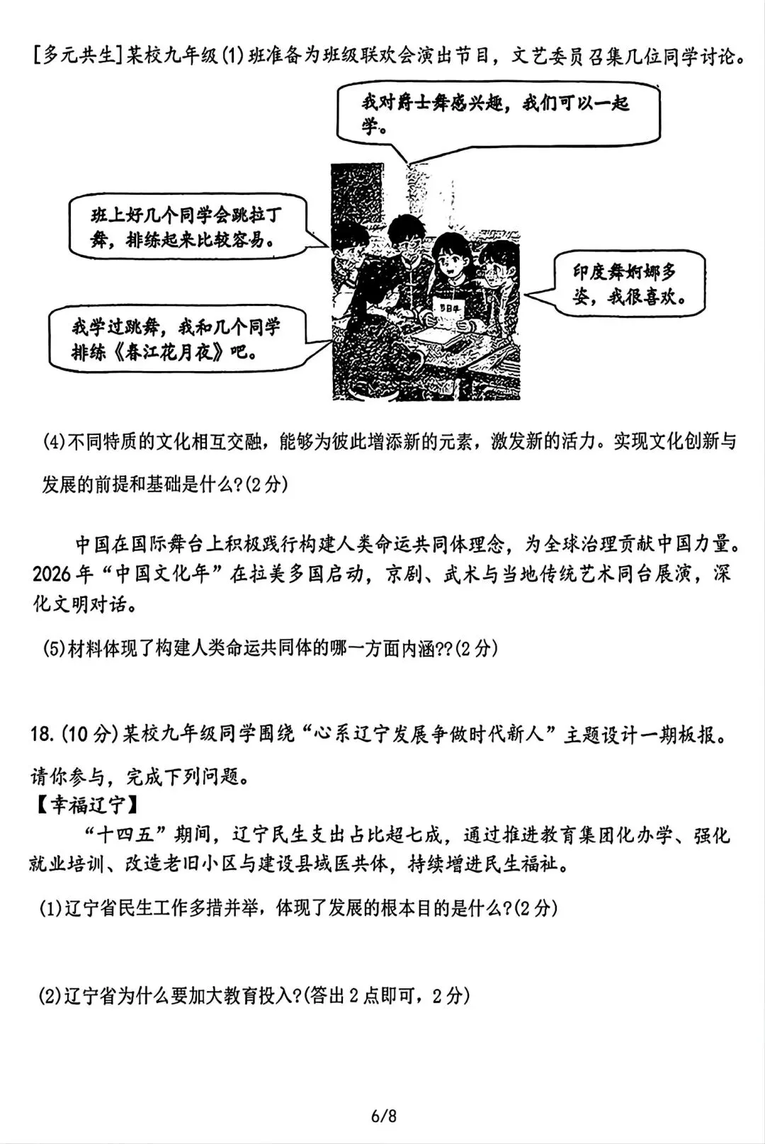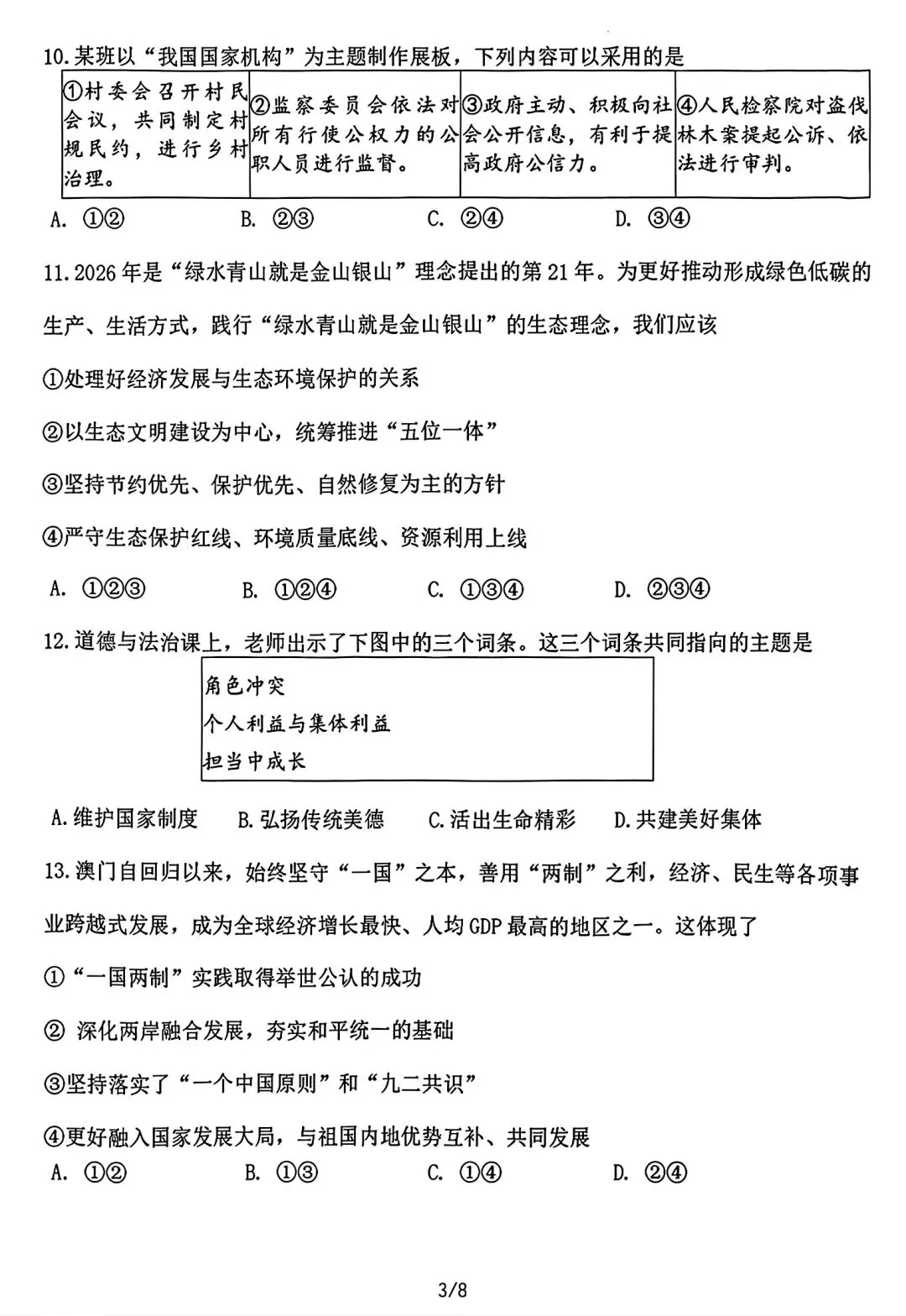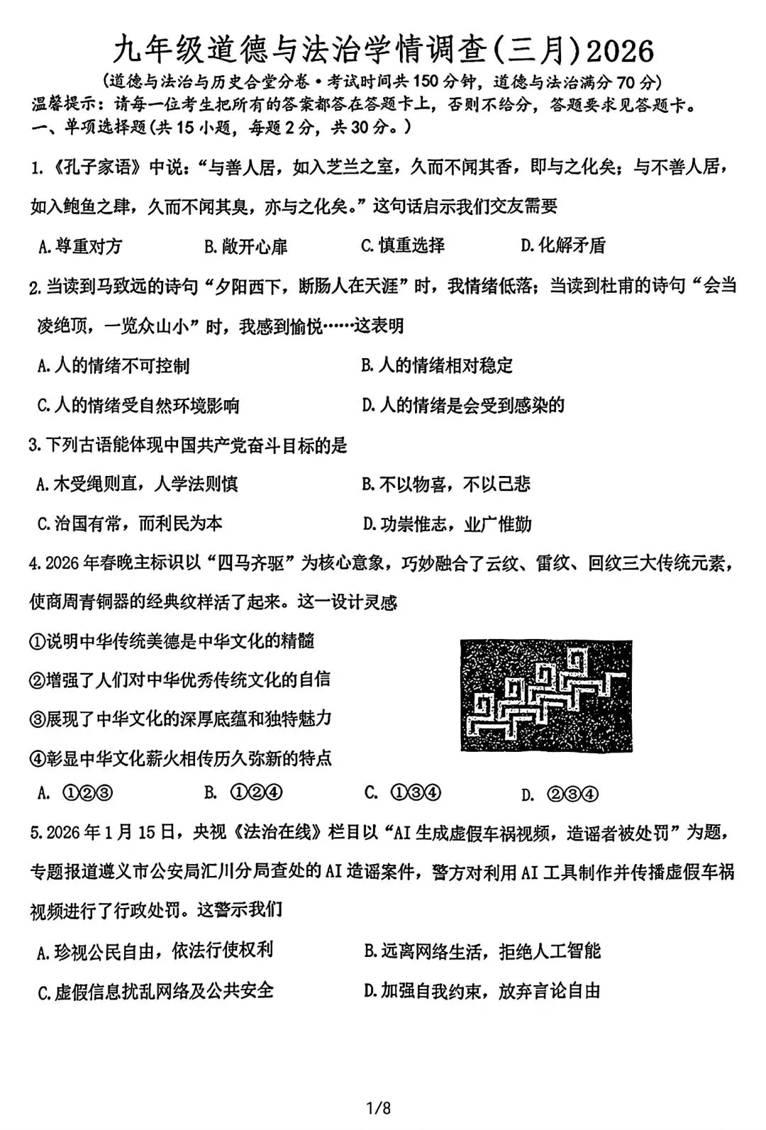 2025-2026辽宁鞍山铁西区中考零模3月道法含答案(无水印).pdf