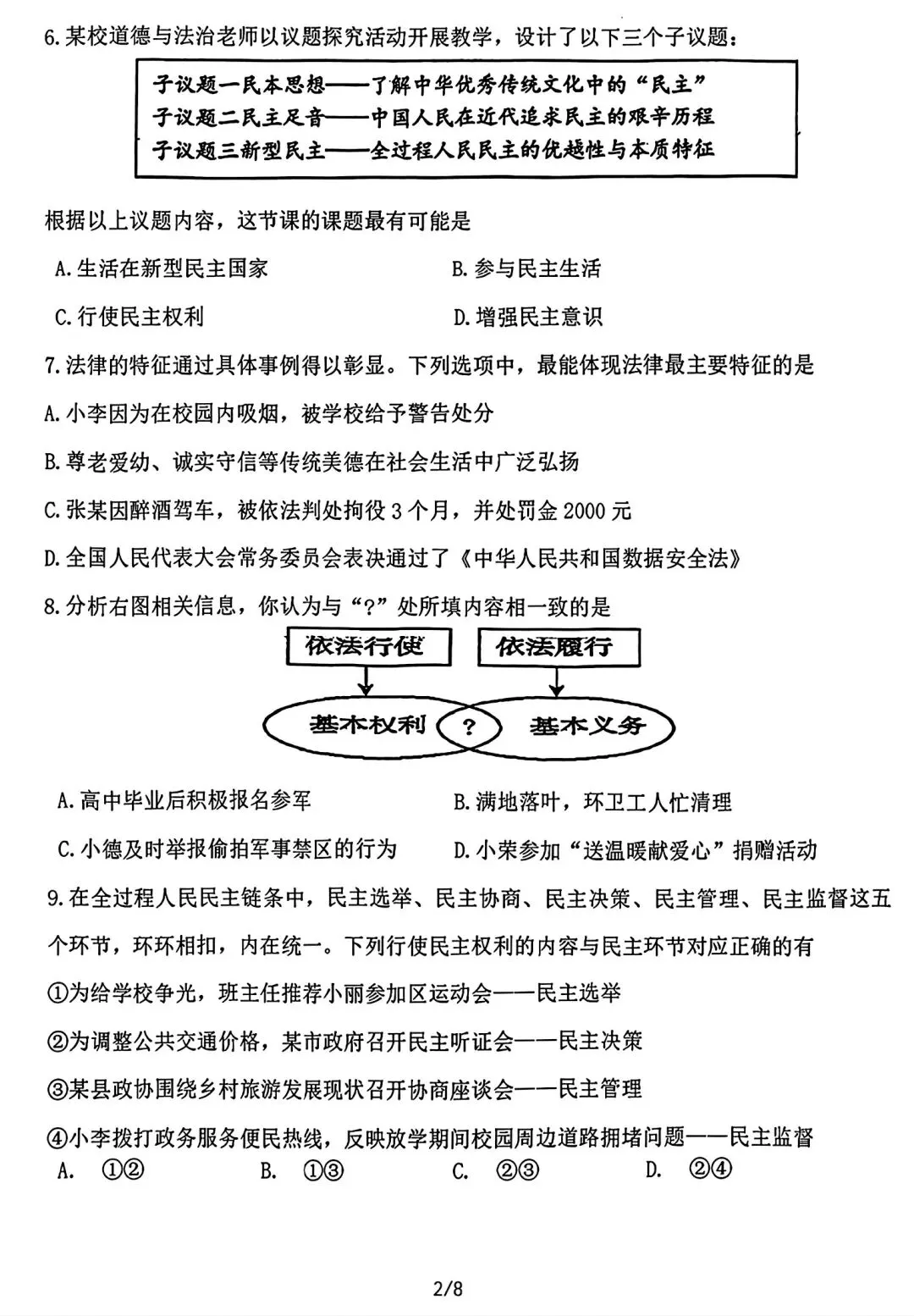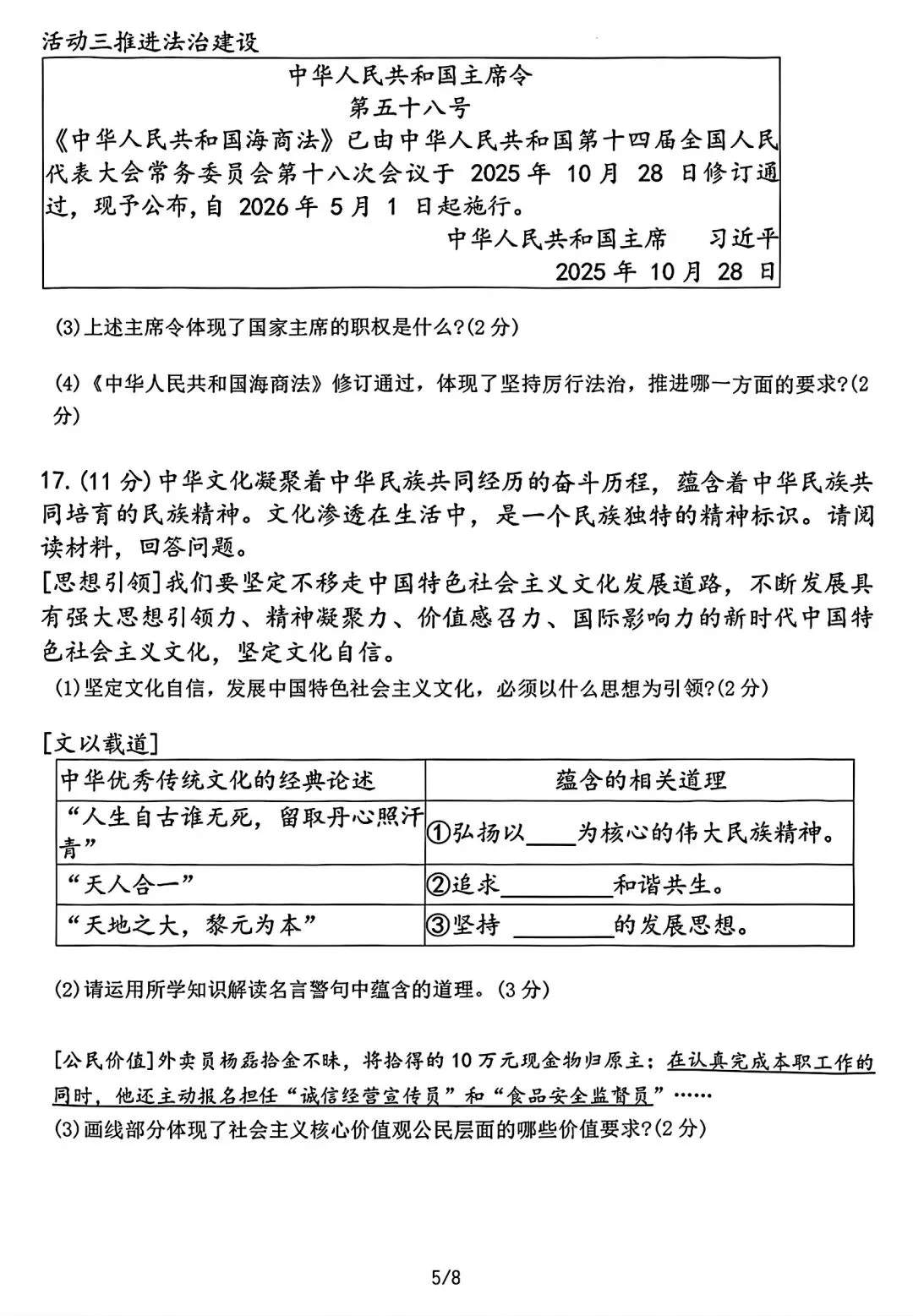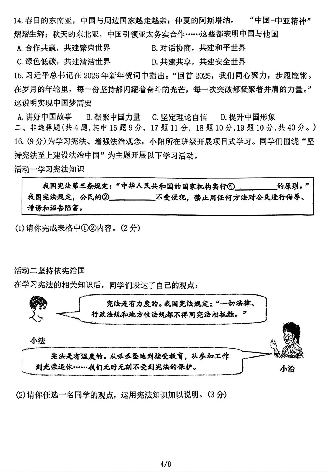 2025-2026辽宁鞍山铁西区中考零模3月道法含答案(无水印).pdf
