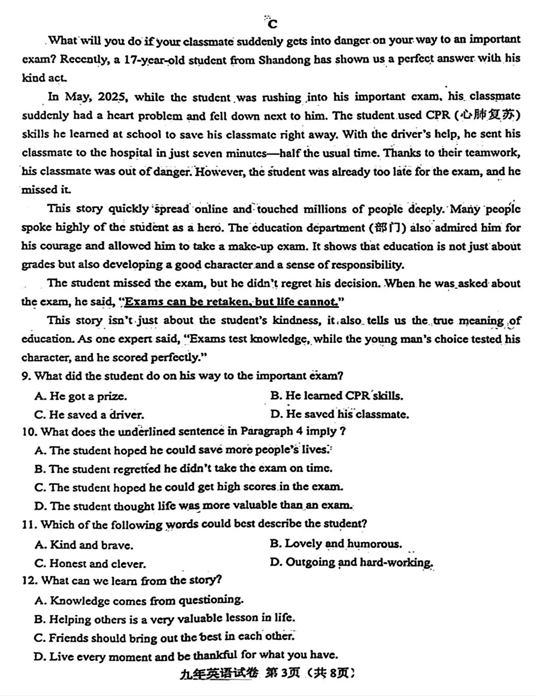 2025-2026辽宁鞍山铁西区中考零模3月英语含答案(无水印).pdf