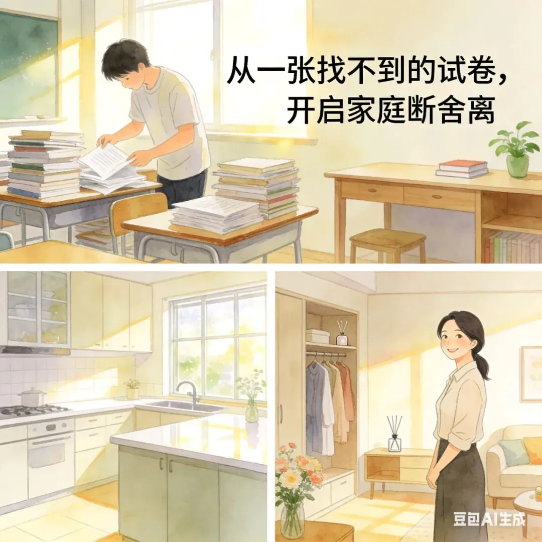 身为从教三十多年的语文老师,我总教学生读书要取精去粕,学习要理清条理,可轮到自己生活,却忘了这个道理。那个高中生找不到试卷,根源就在于不懂取舍,杂物堆积太多,反倒忽略了核心所需。
