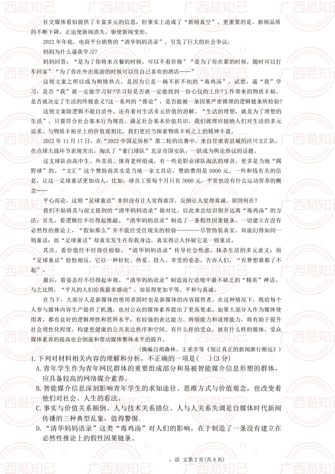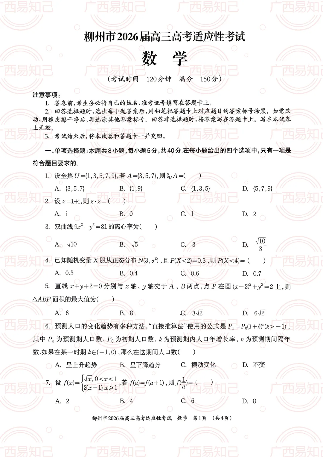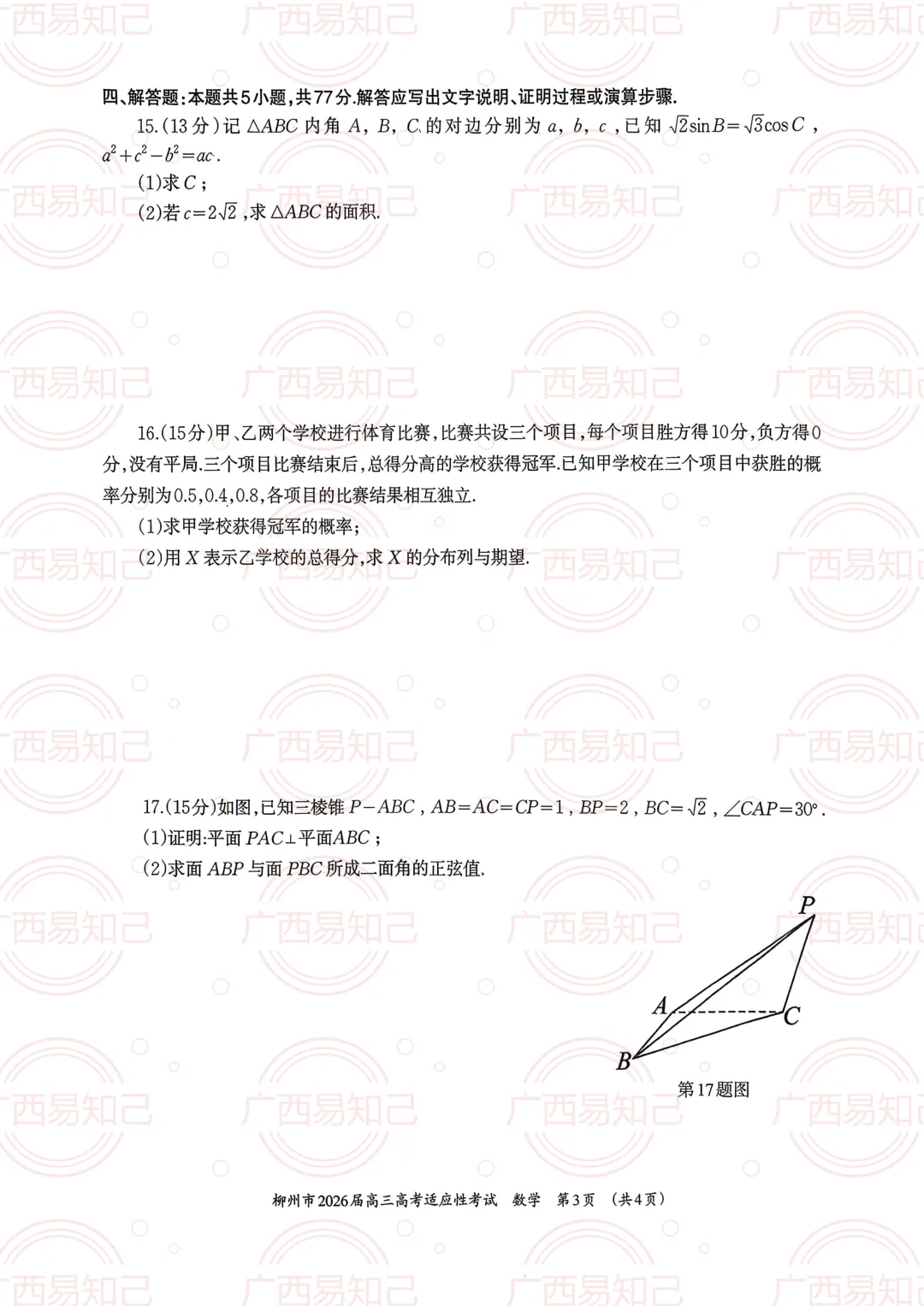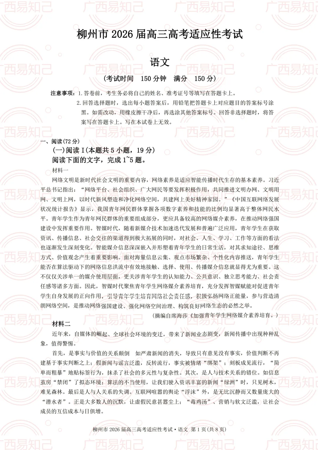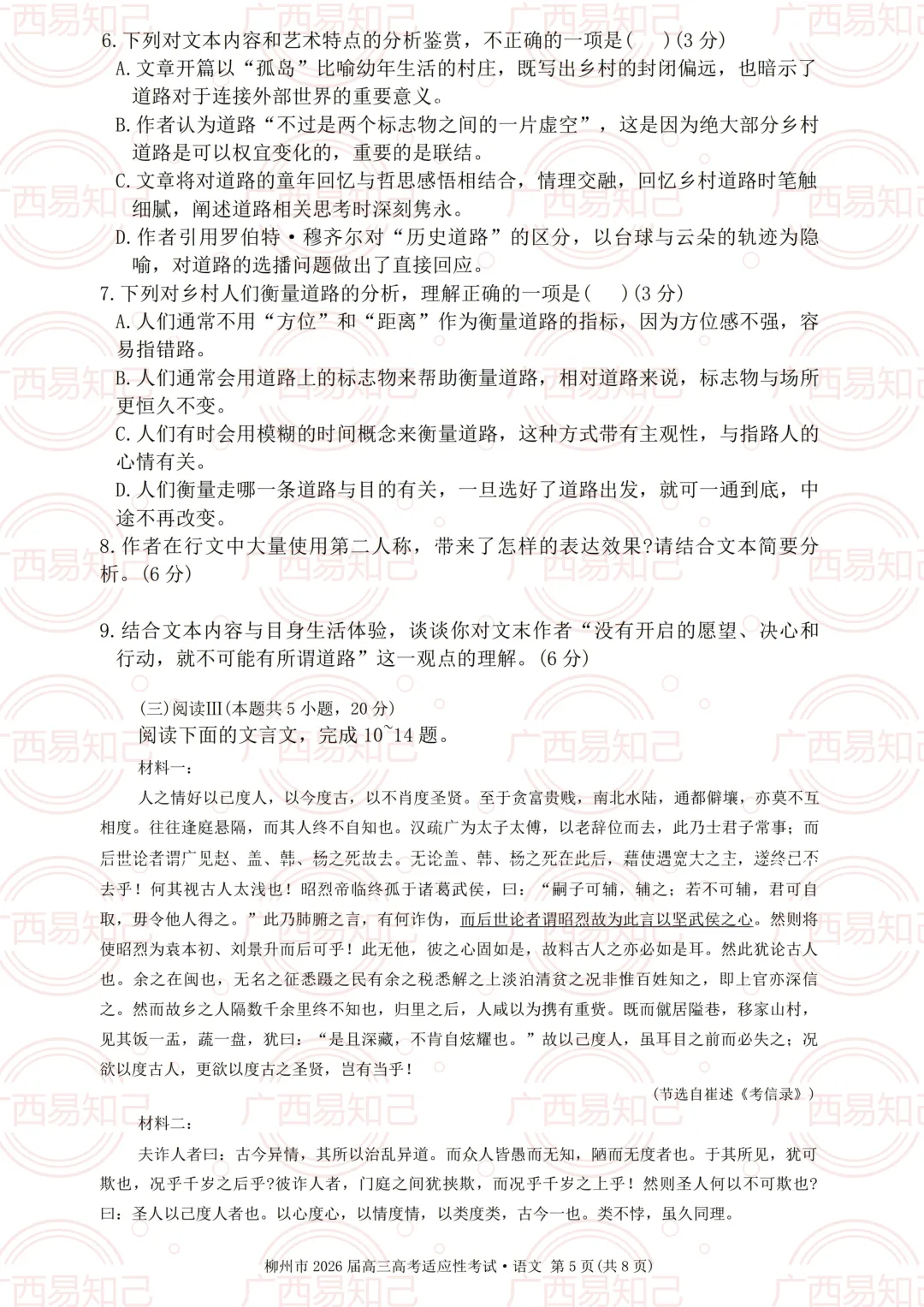 3月30日-4月1日,柳州市组织第三次全市模考。易知己的老师第一时间给大家整理了本次模考的试卷及答案。