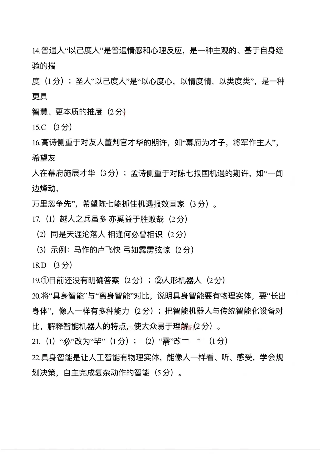 需要完整版试卷及答案的考生家长