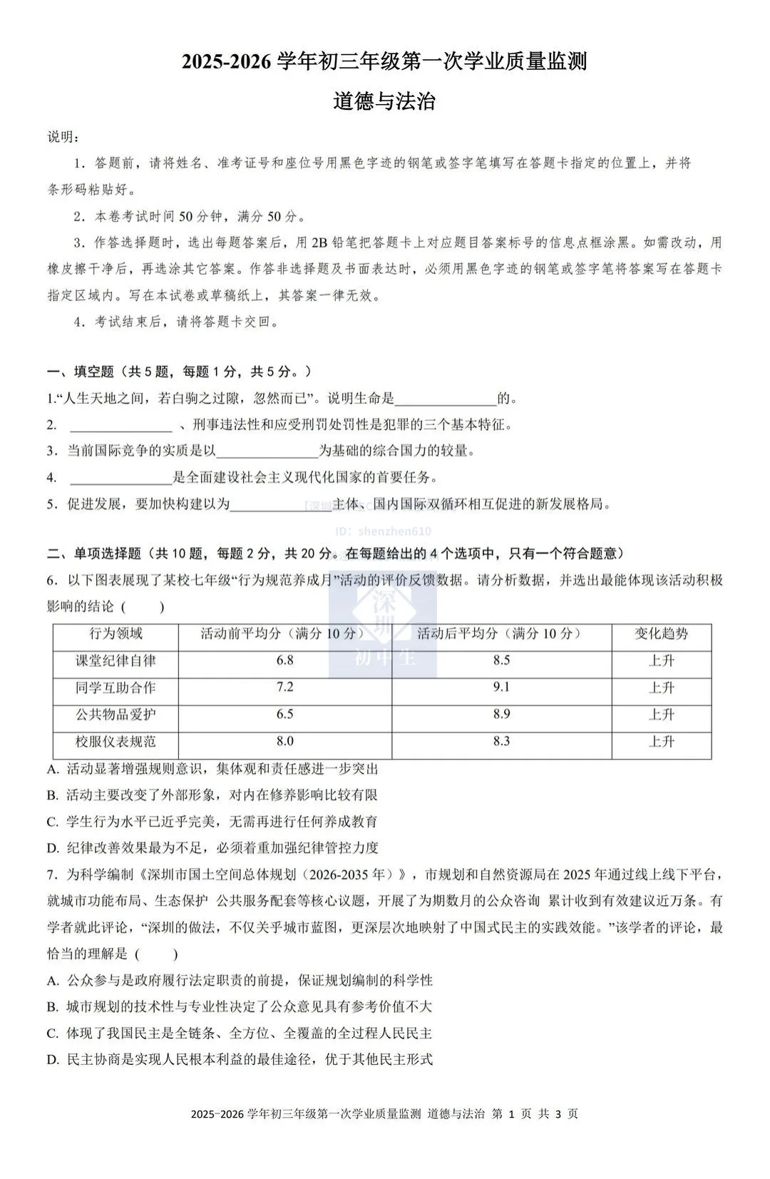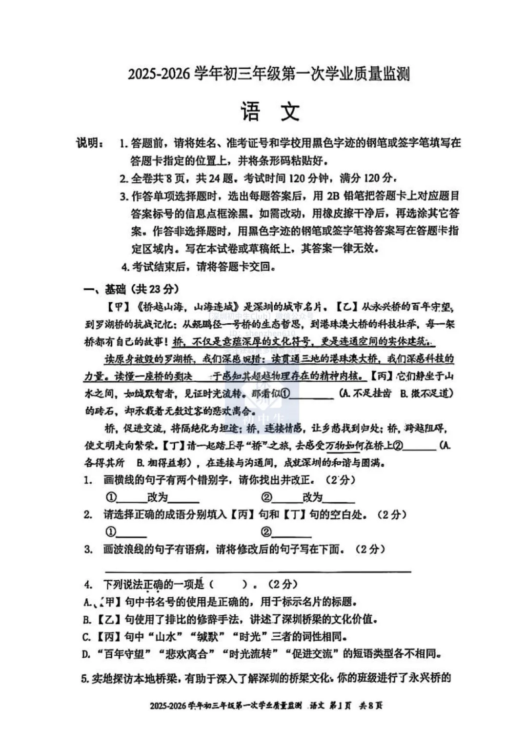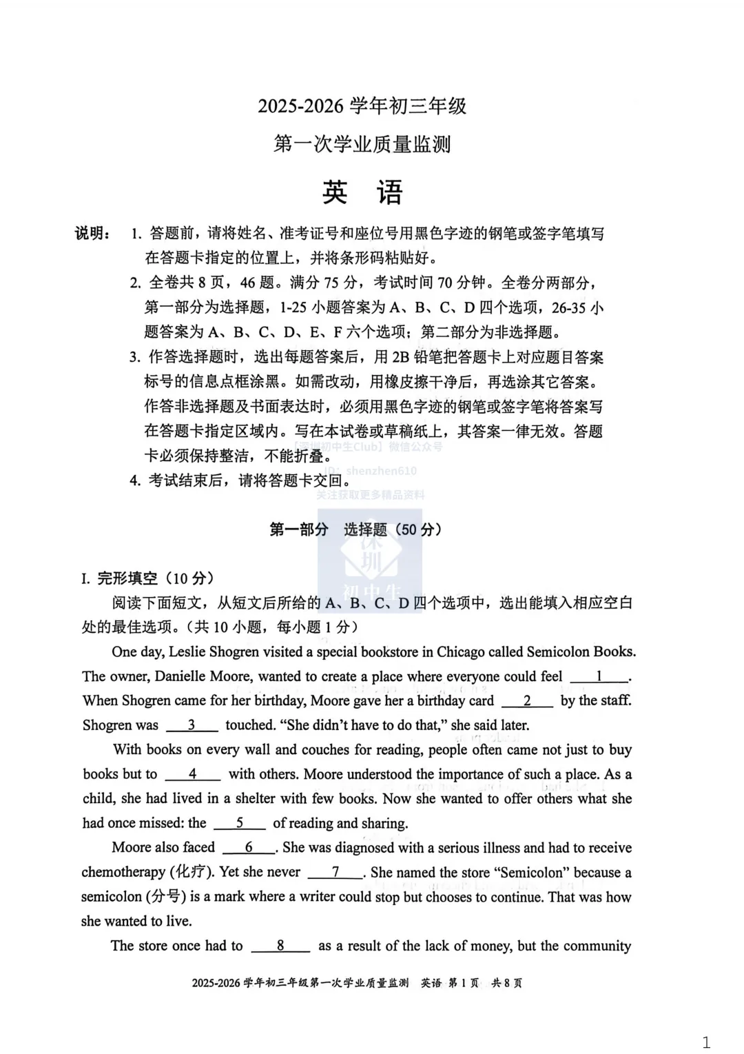 我们为同学们精心整理了2025-2026年深圳市南山实验教育集团初三年级一模全科真题试卷及参考答案,pdf版本可下载打印后练习!