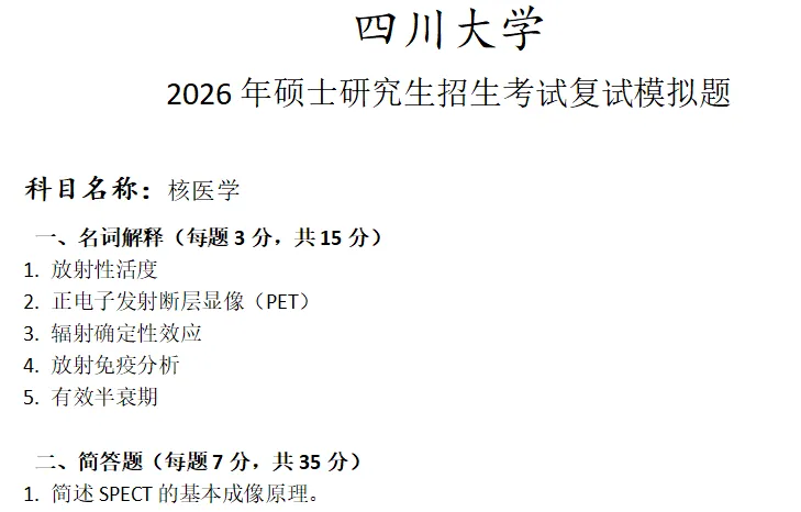 四川大学核医学考研复试真题模拟