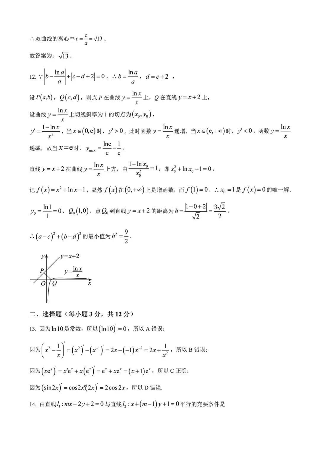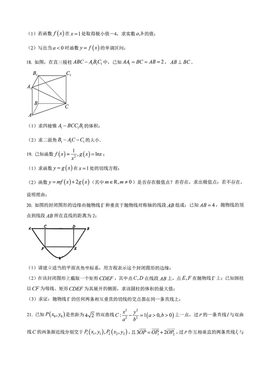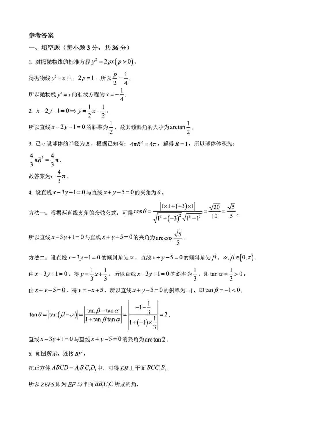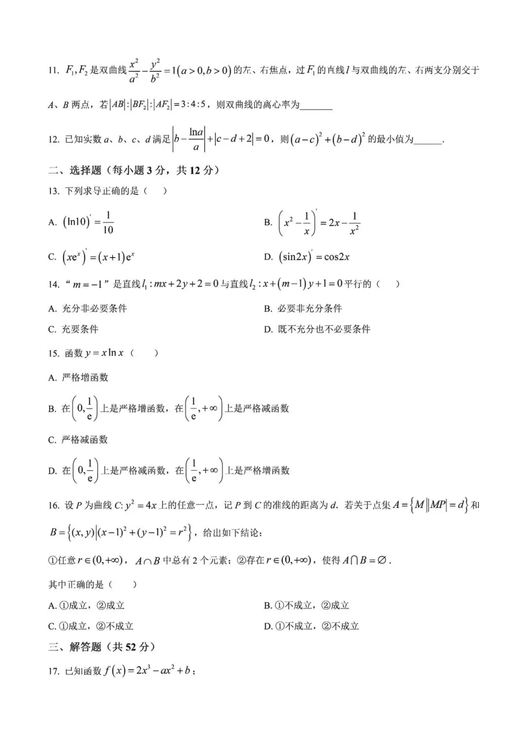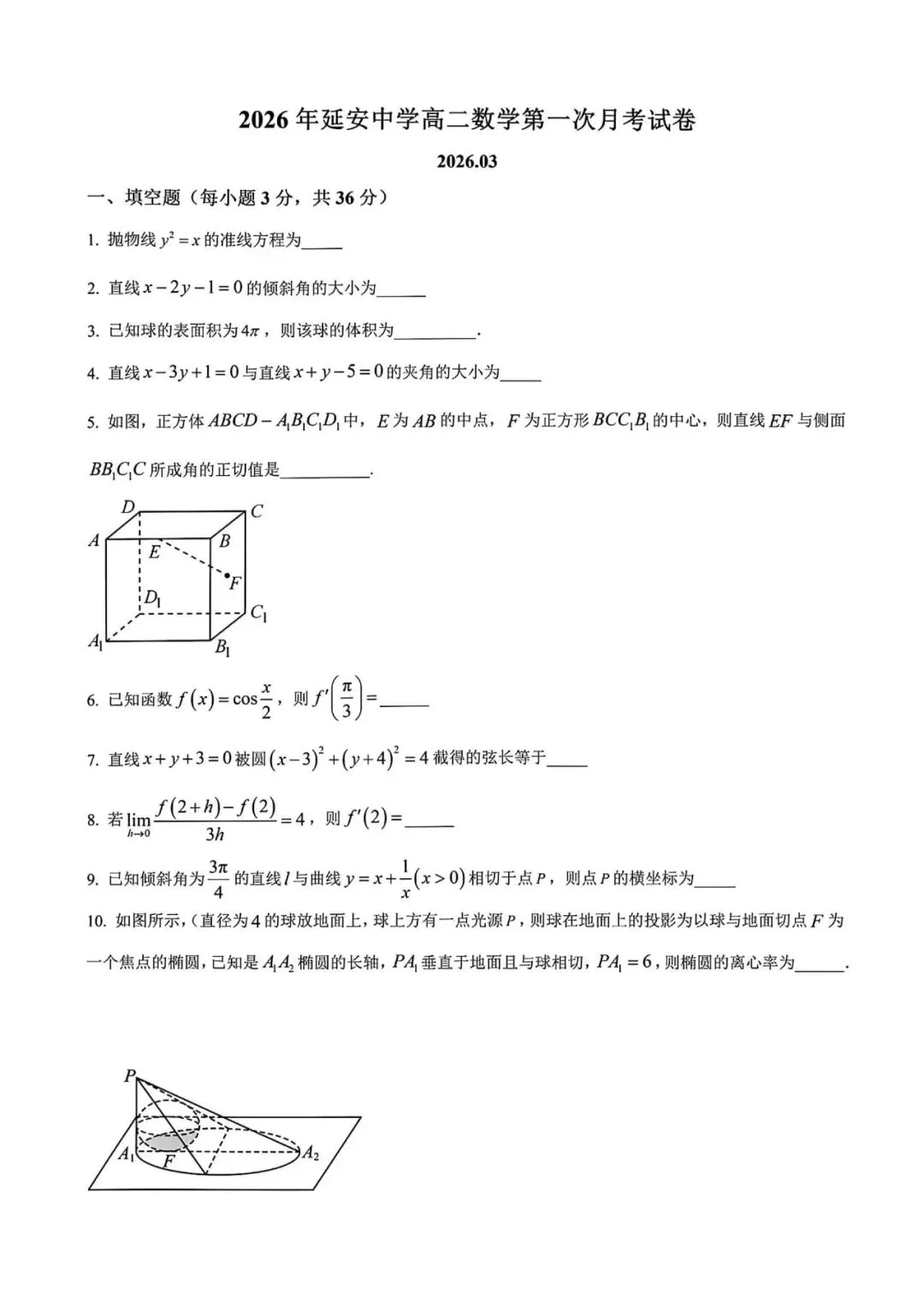 >上海市延安中学高二下学期数学第一次月考试卷及答案(2026.3)