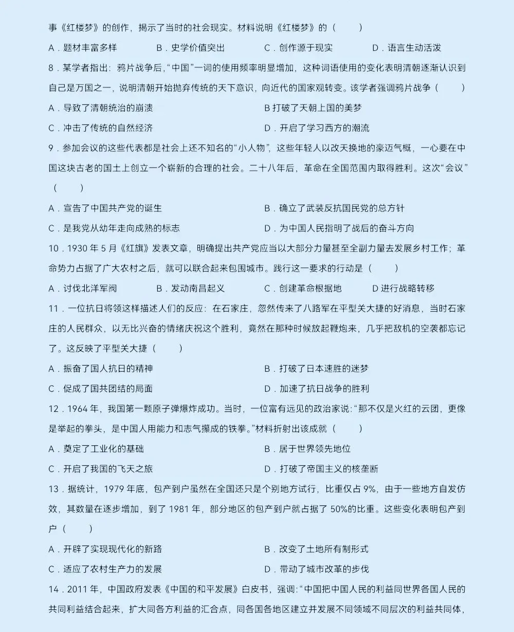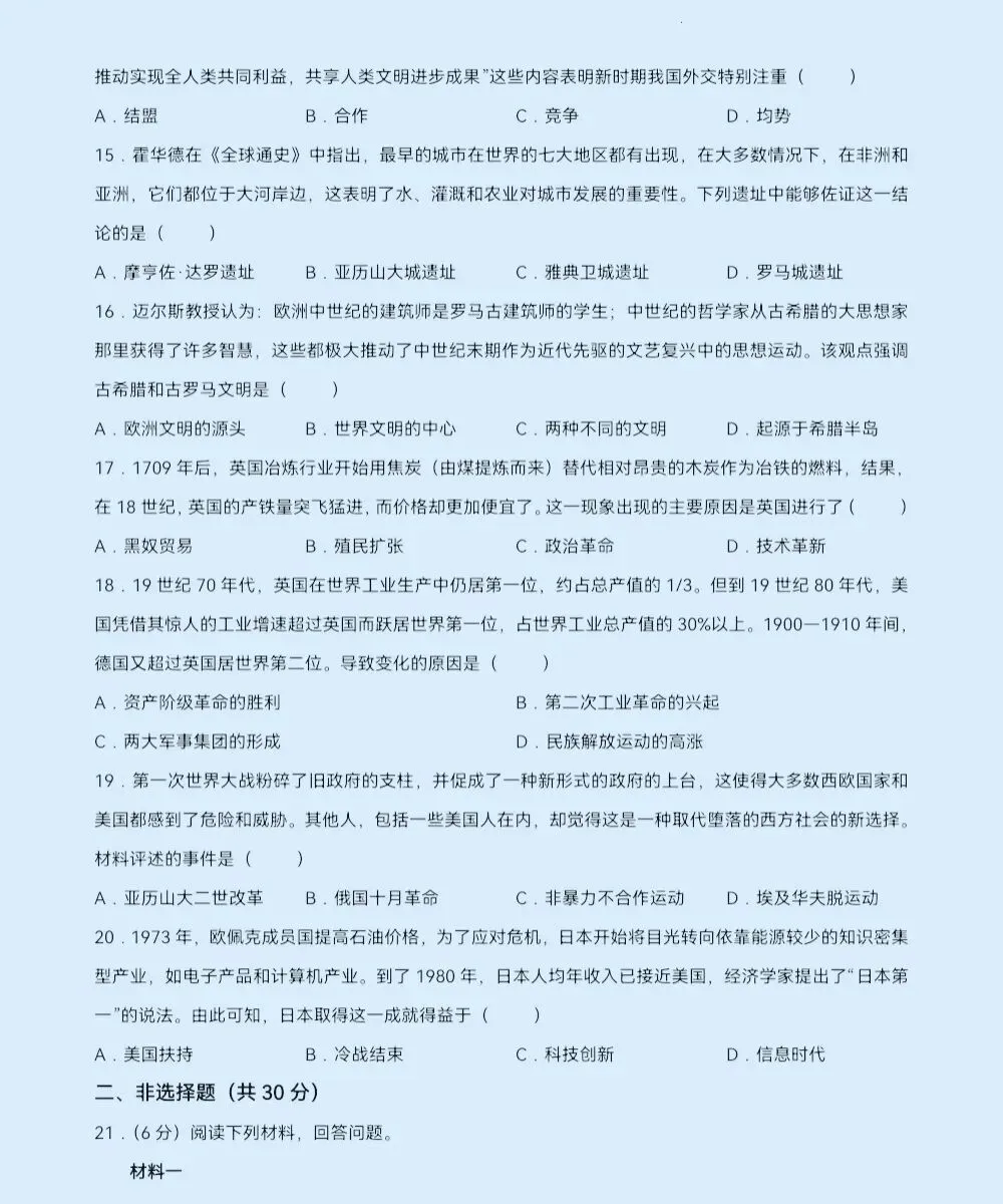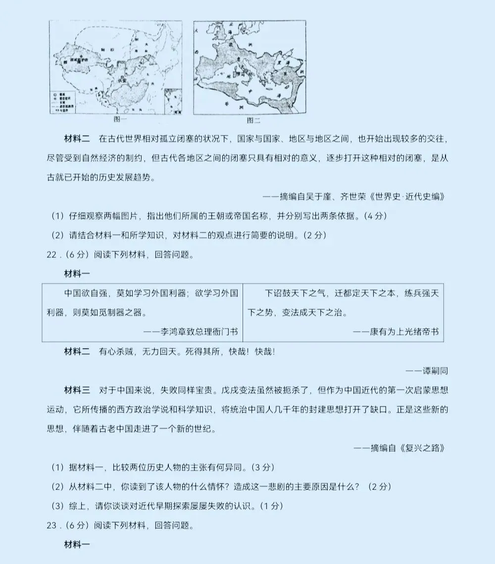 郑枫杨外国语3月份模考历史试卷及答案