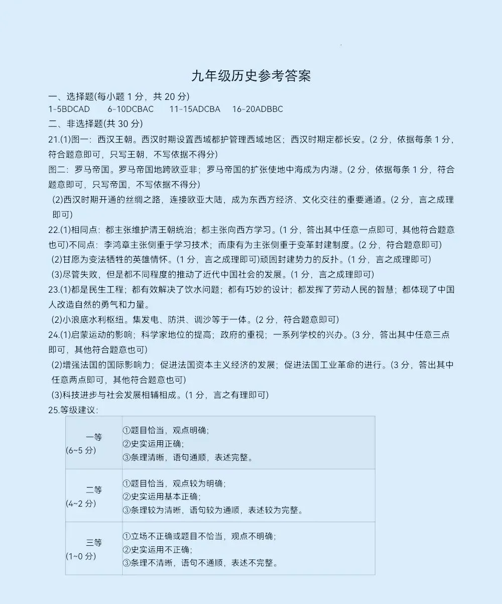 【试卷/初三下】2025-2026辽宁鞍山铁西区中考零模3月历史(含答案)可下载