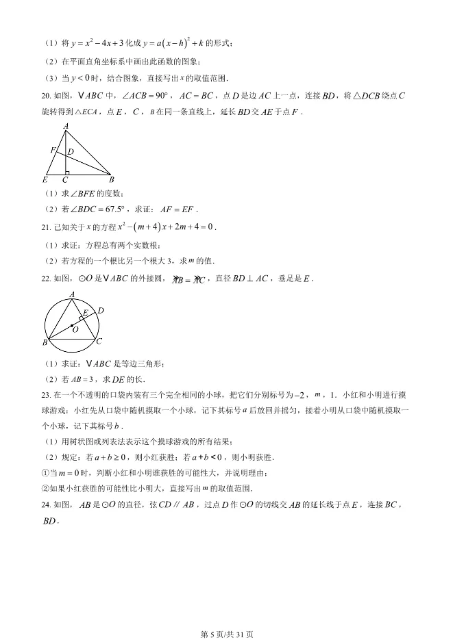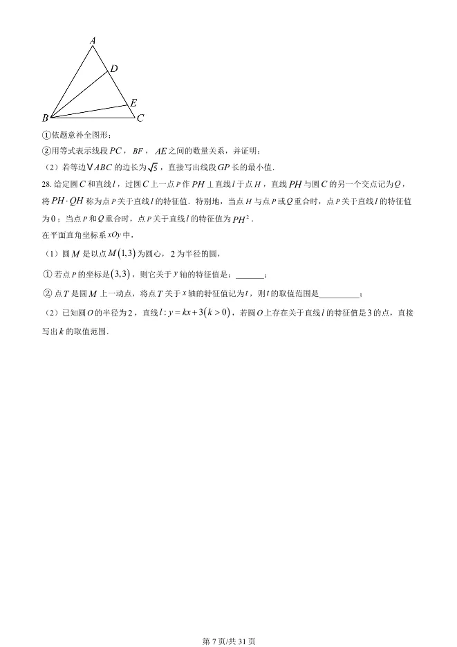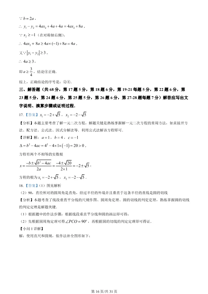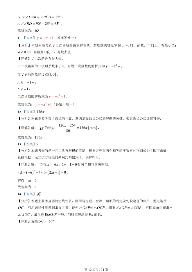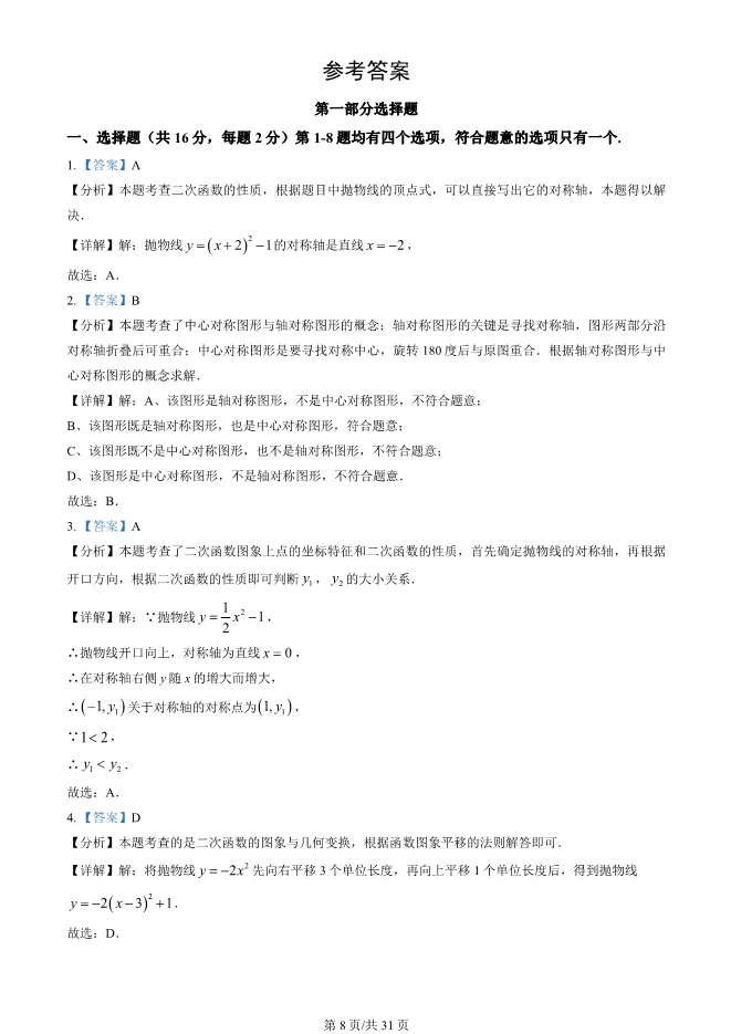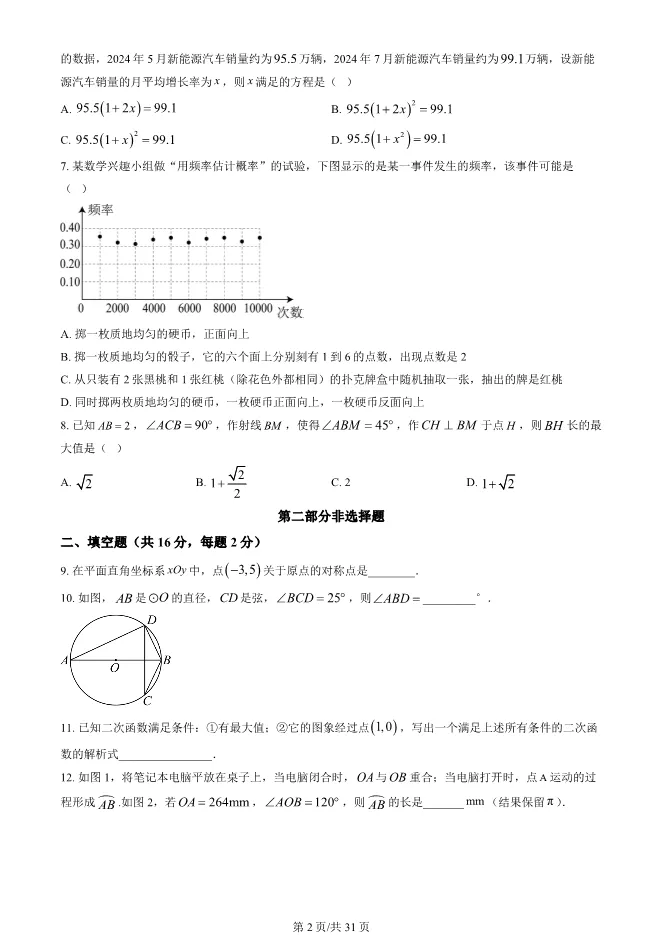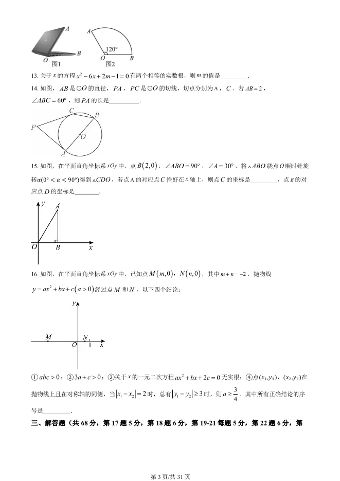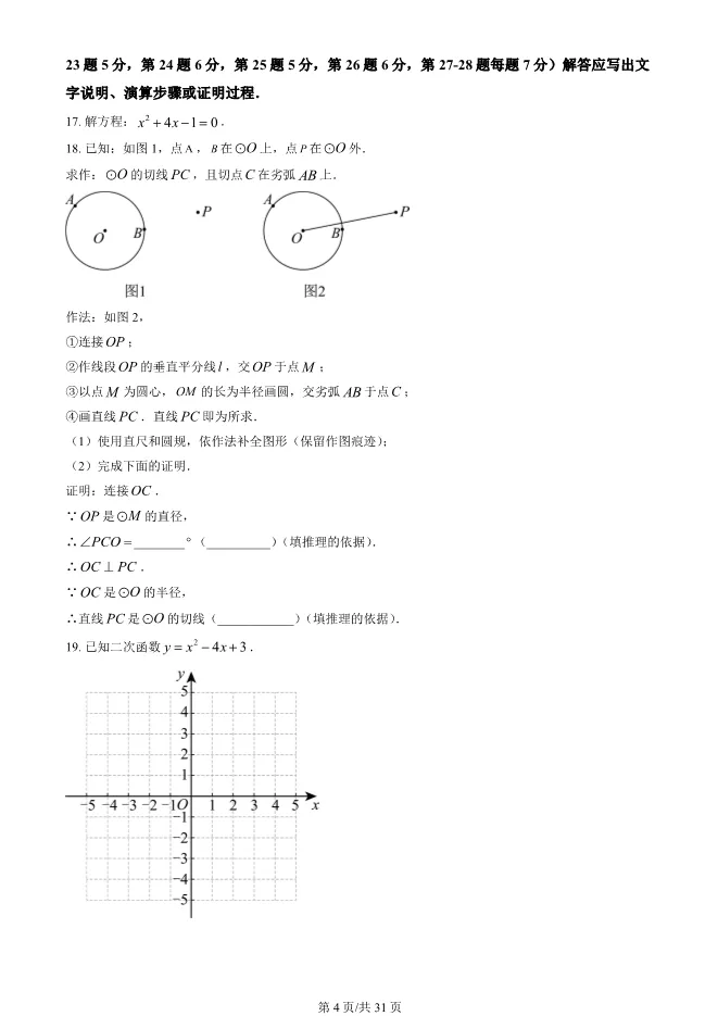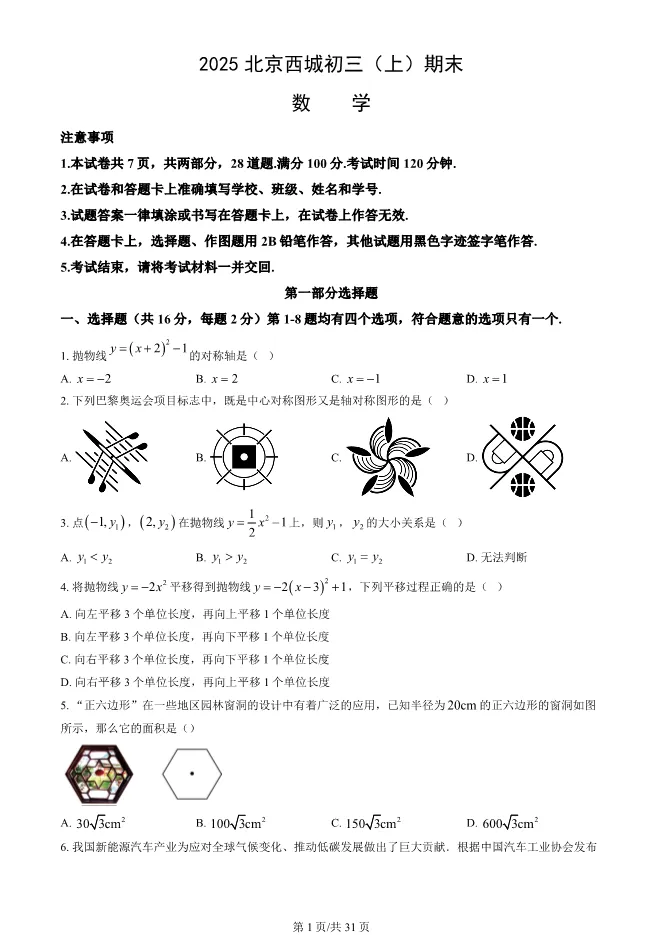2025北京西城初三上册期末数学试卷(有答案) 电子版试卷获取,后台回复:试卷