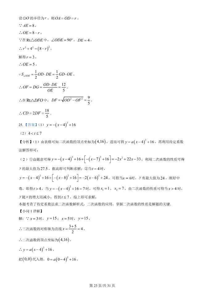 2025北京西城初三上册期末数学试卷(有答案)【可下载】