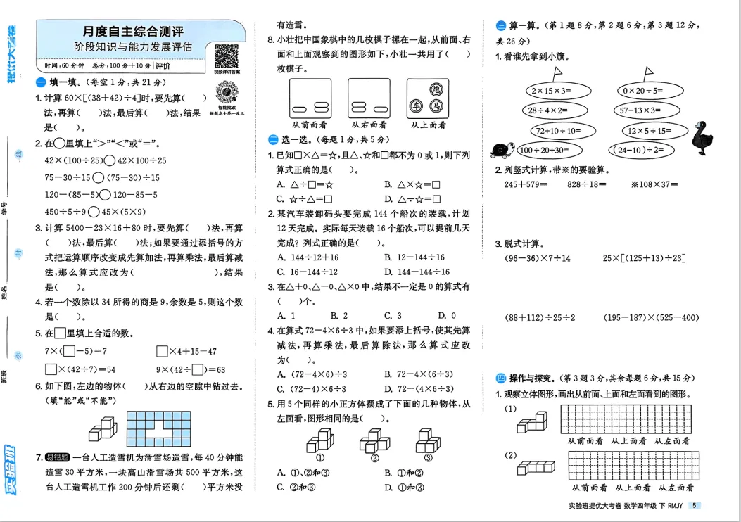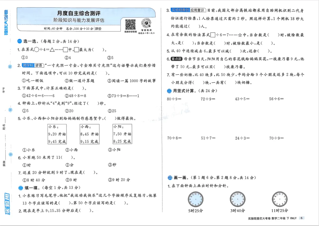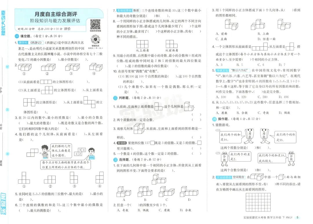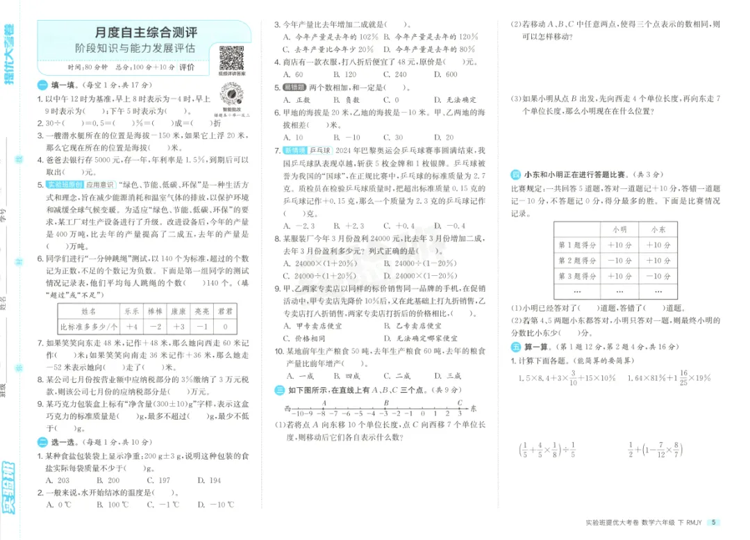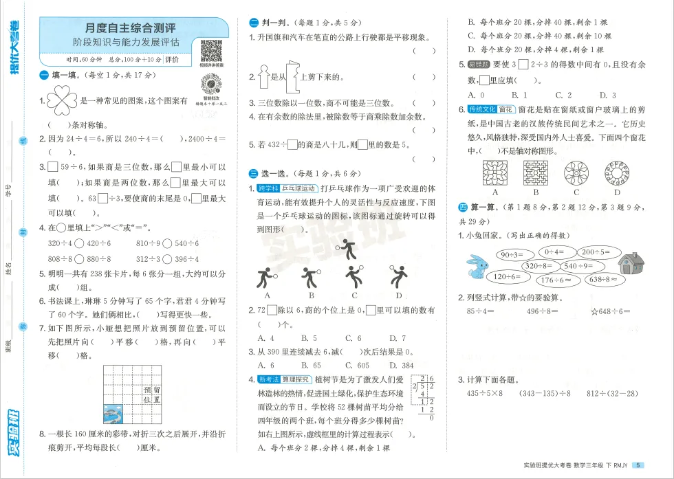 26春人教版数学1-6年级下册月考试卷(有答案)建议各位家长领取,帮助孩子学习!
