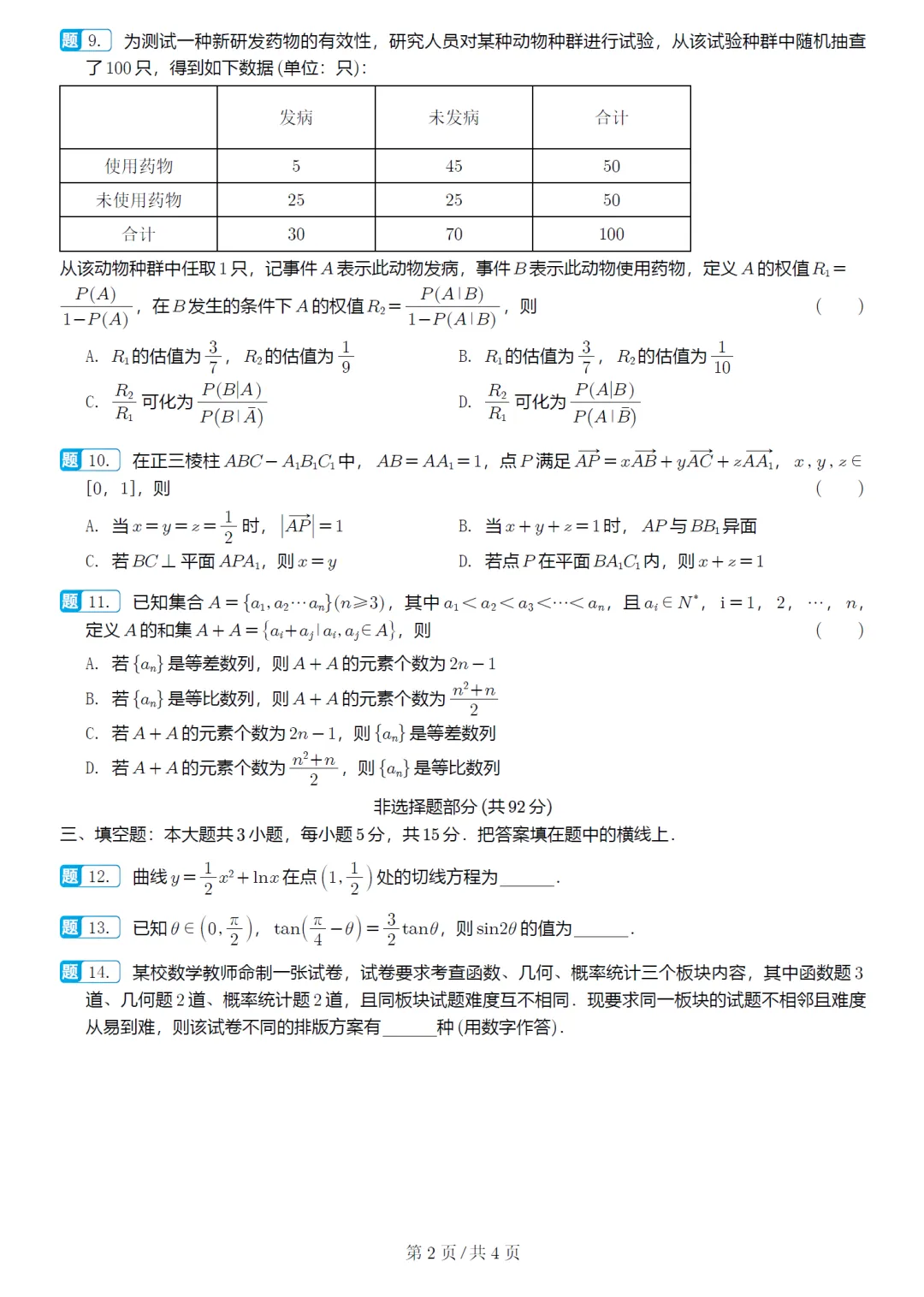 162.2026届福建高中适应性高三数学试卷及逐题解析(2025.12)