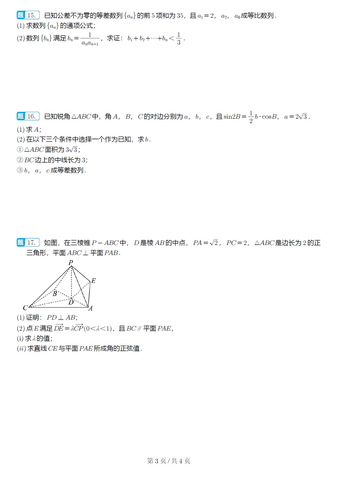 179.2026届浙江温州市三期末考数学试卷及逐题解析(2026.1)