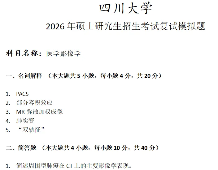 >四川大学医学影像学考研复试真题模拟