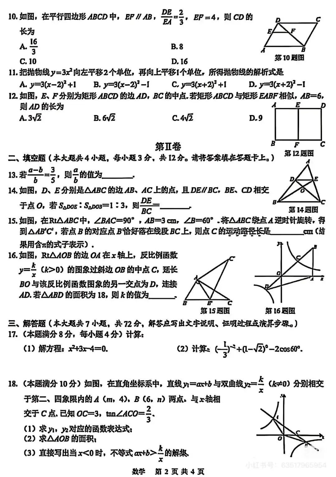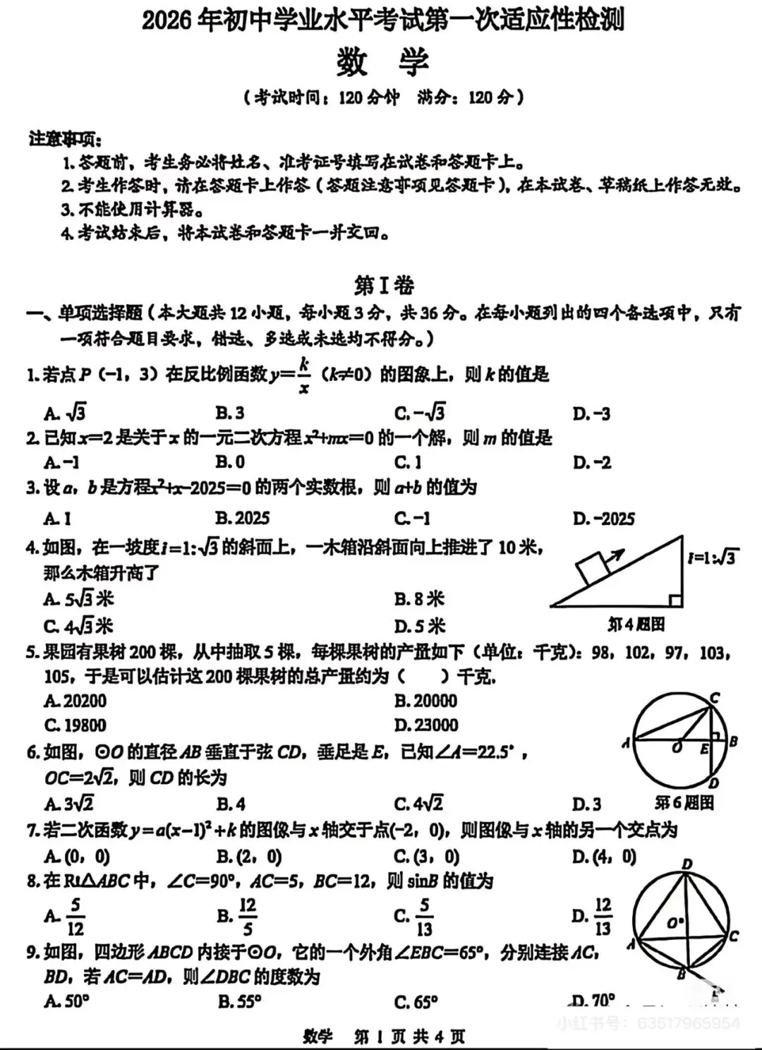 >2026年初中数学适应性检测试卷