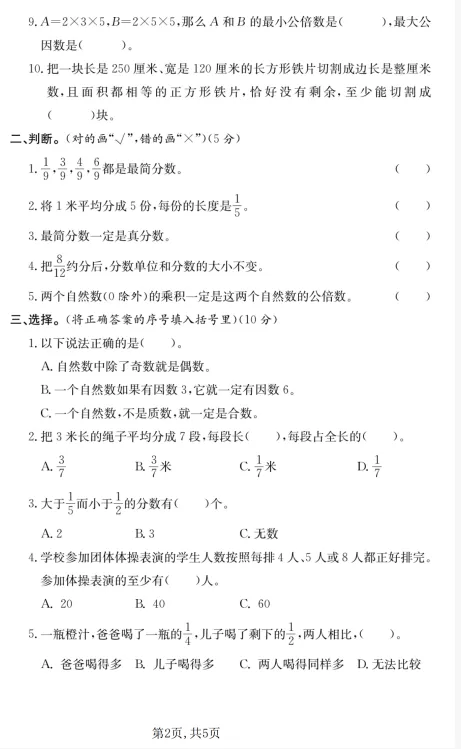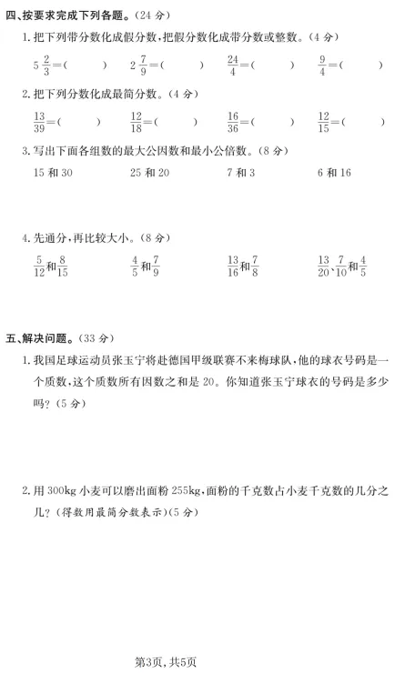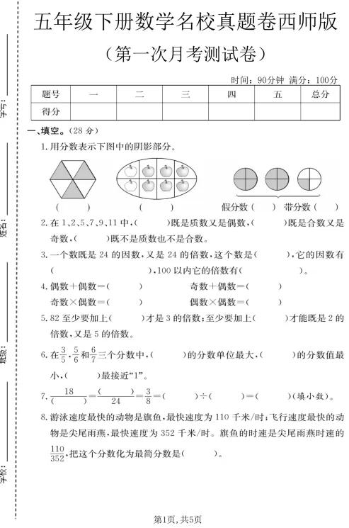 五年级下册数学名校真题月考试卷,赶紧来挑战!