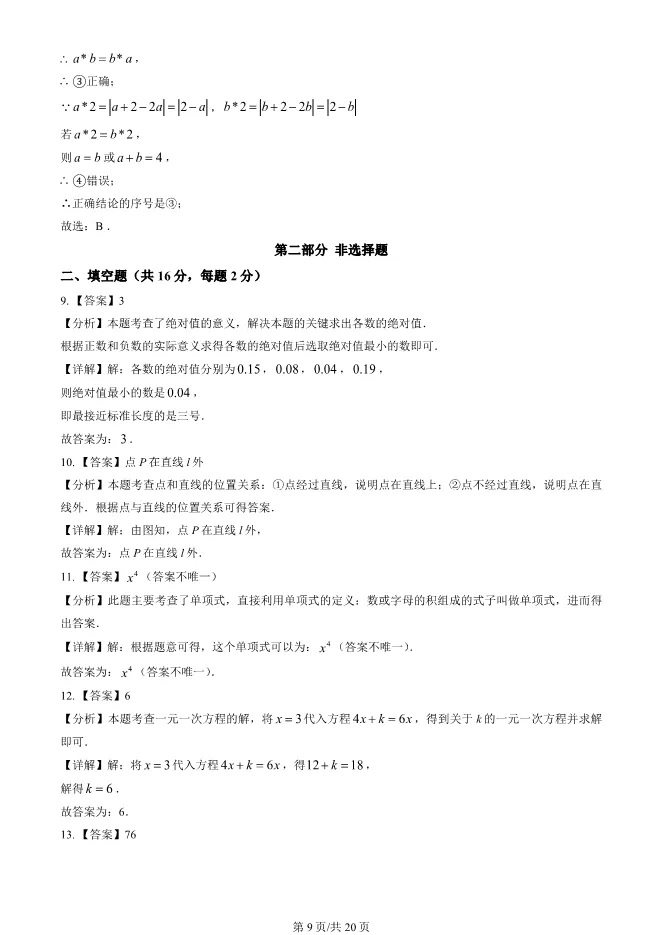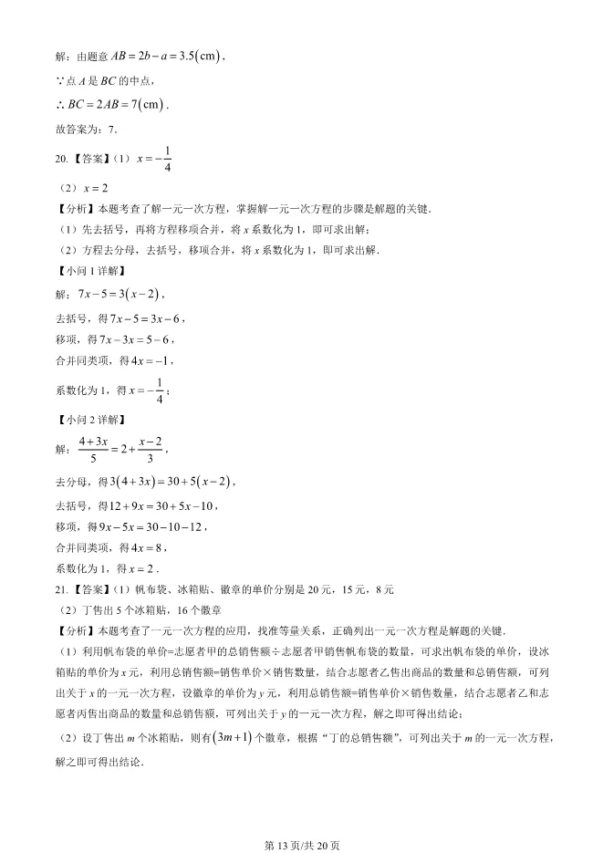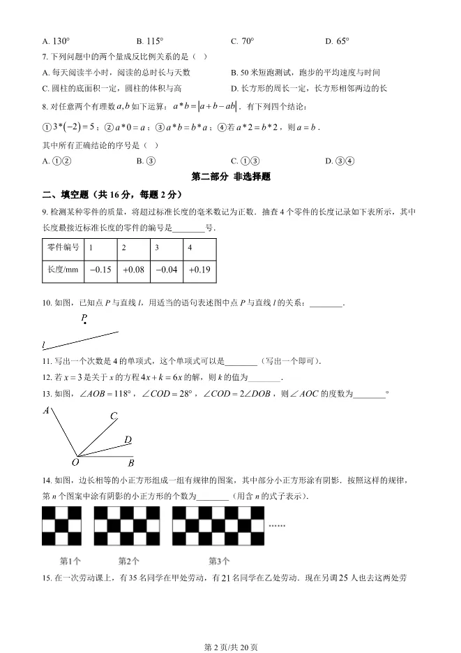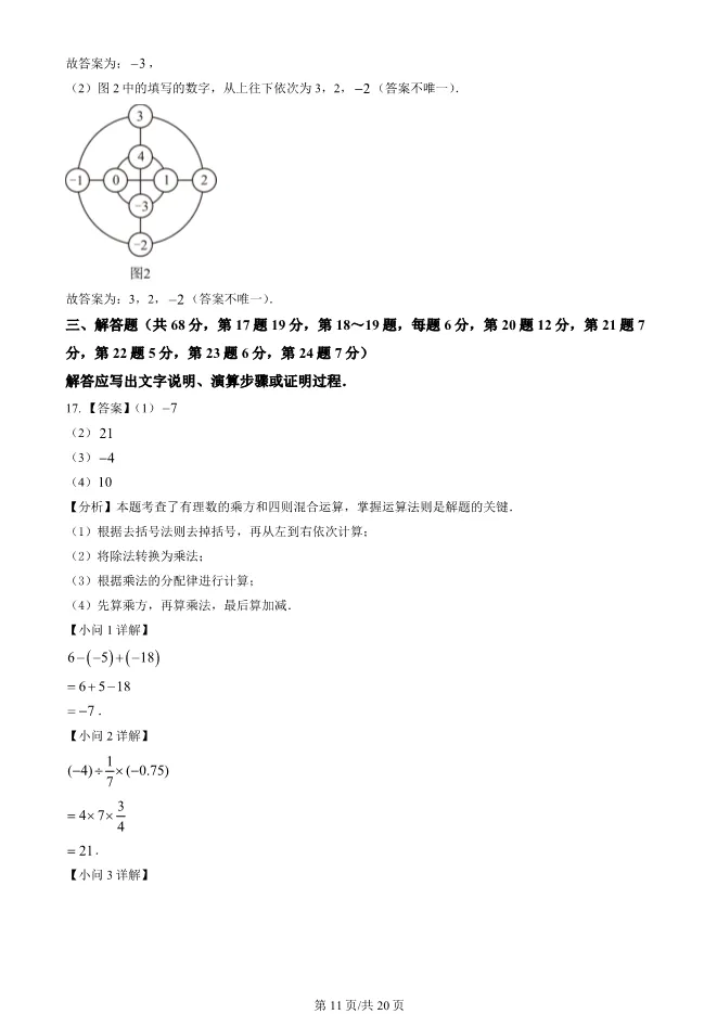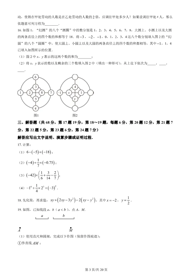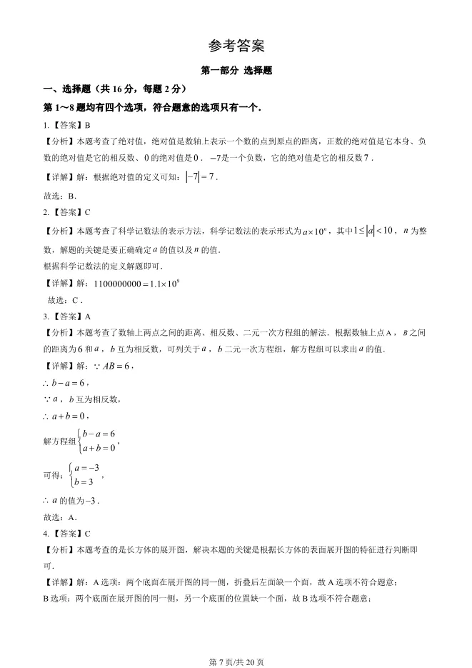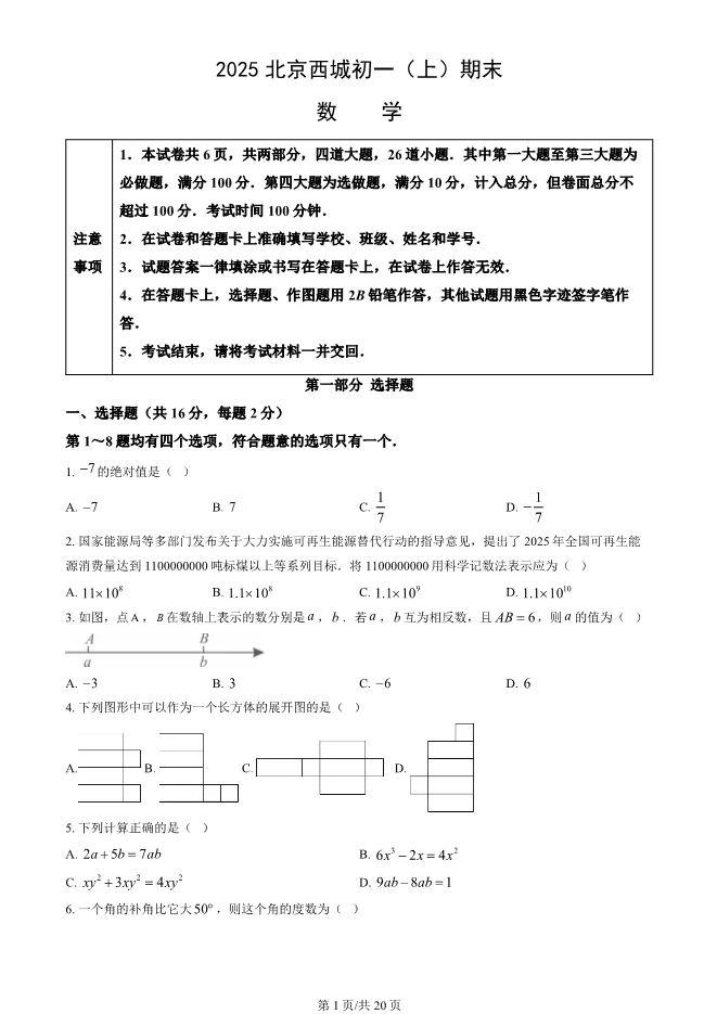 2025北京西城初一上册期末数学试卷(有答案) 电子版试卷获取,后台回复:试卷