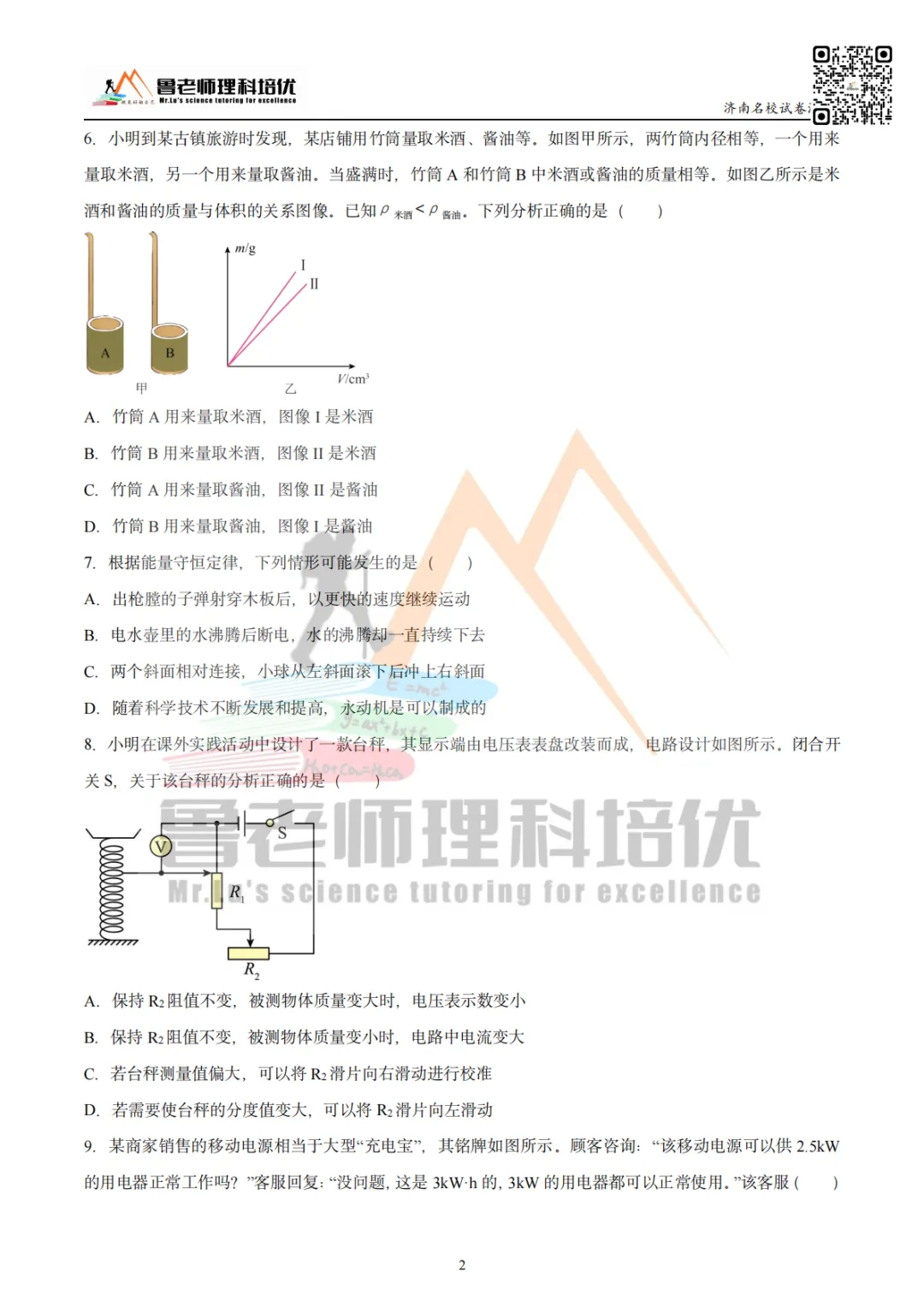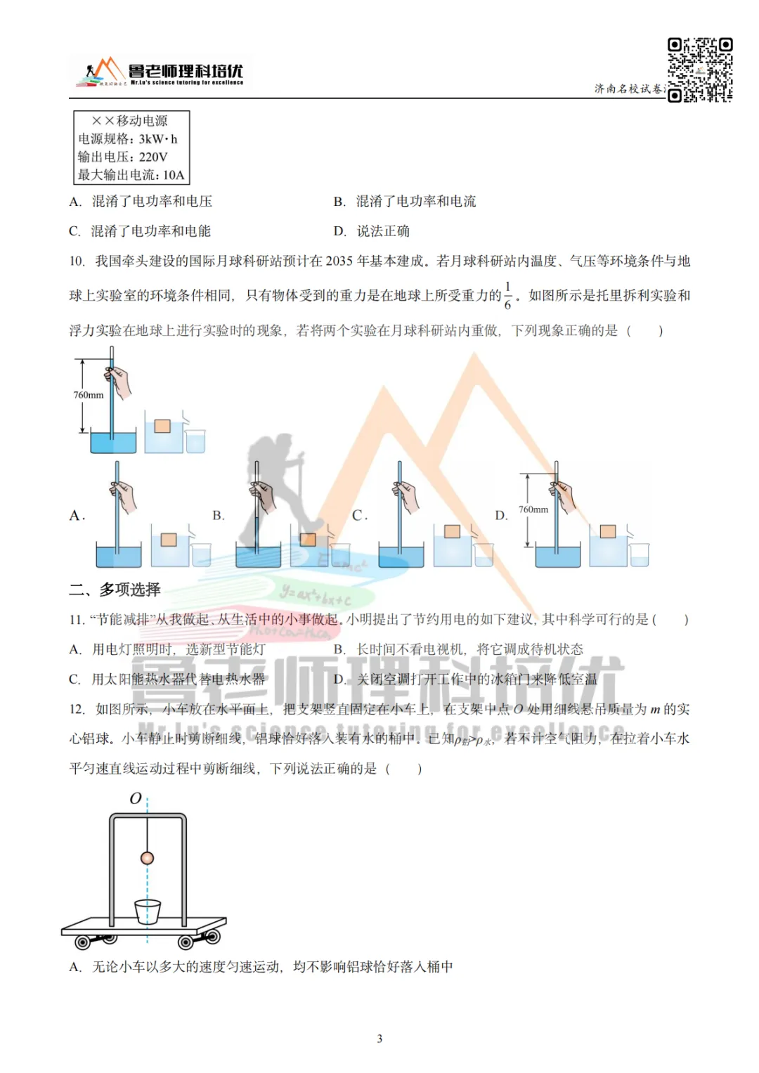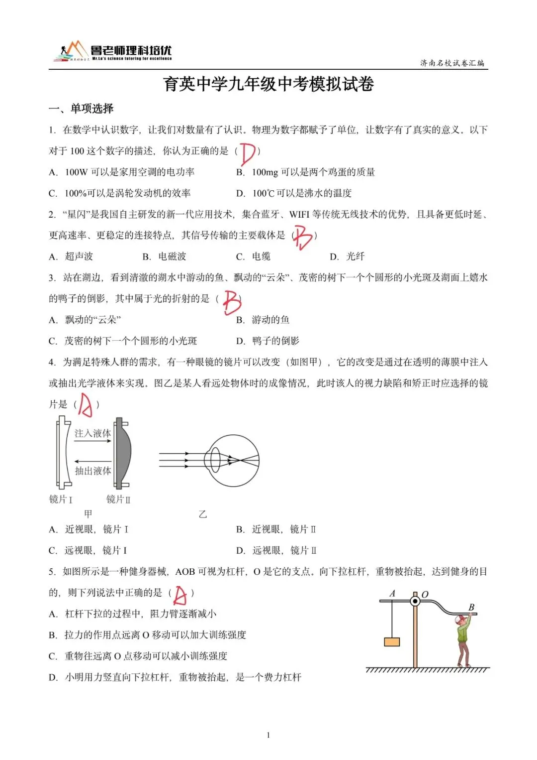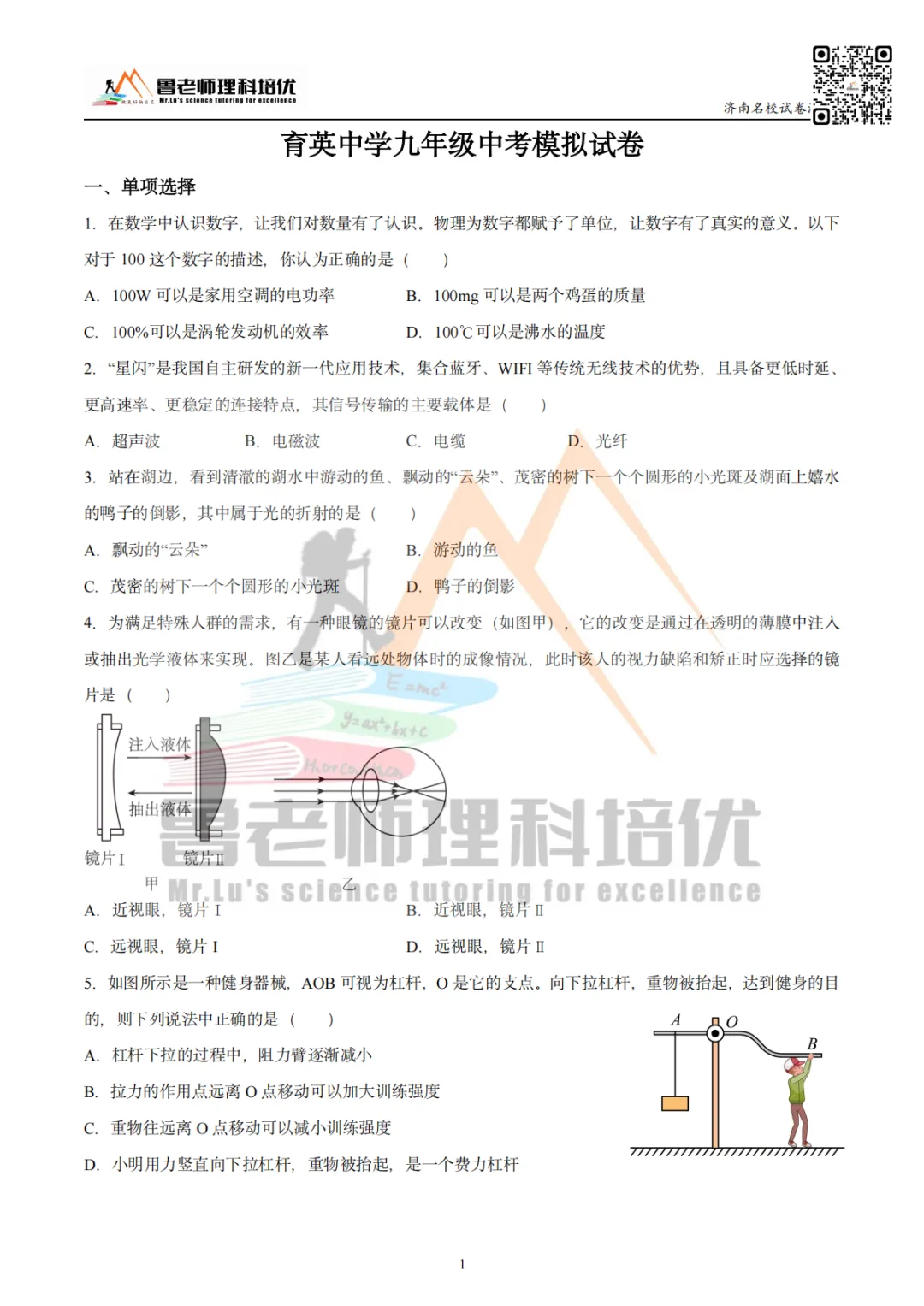 >育英中学模考物理试卷来啦!