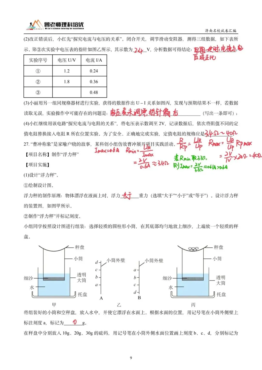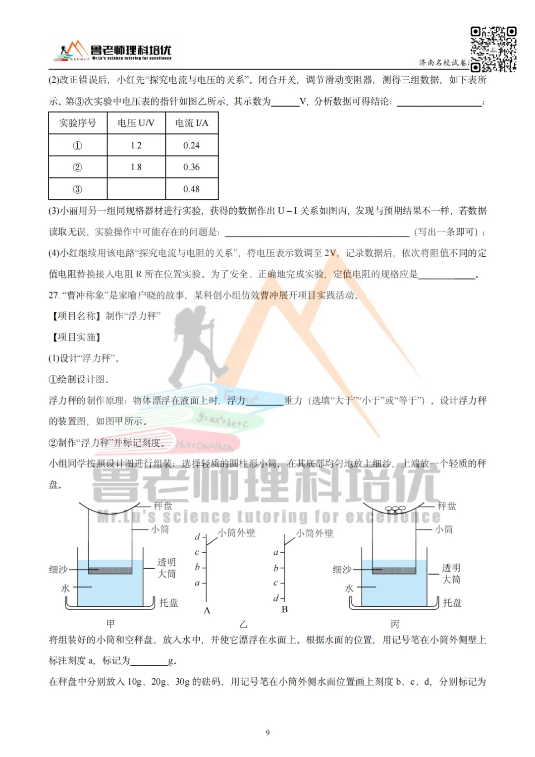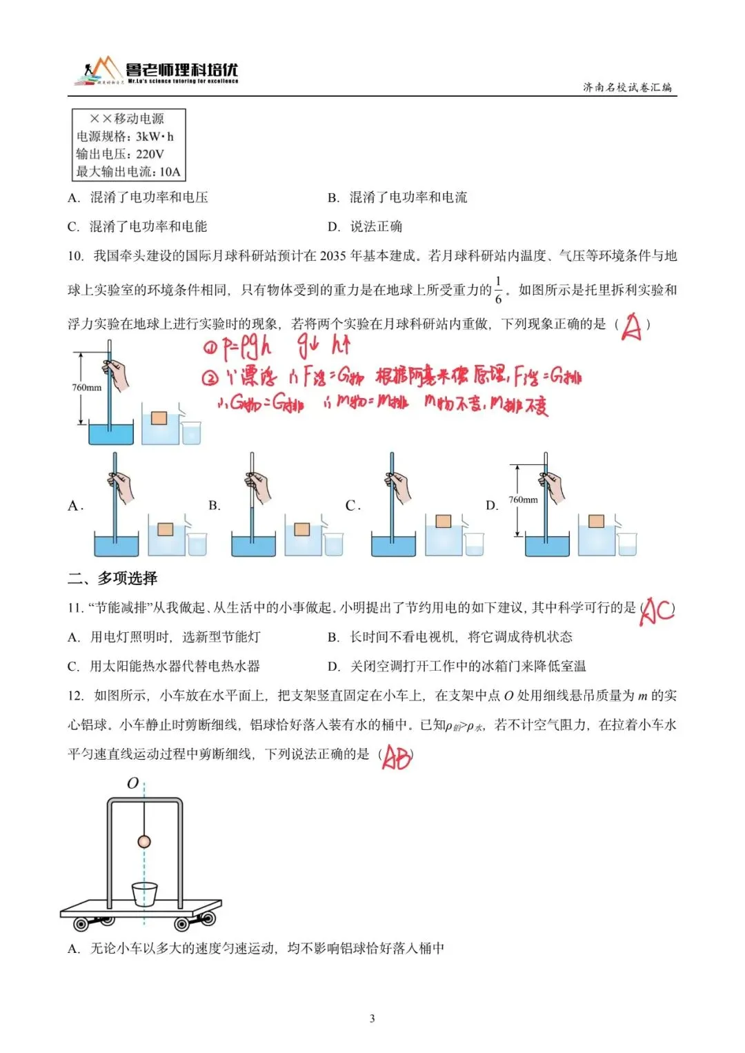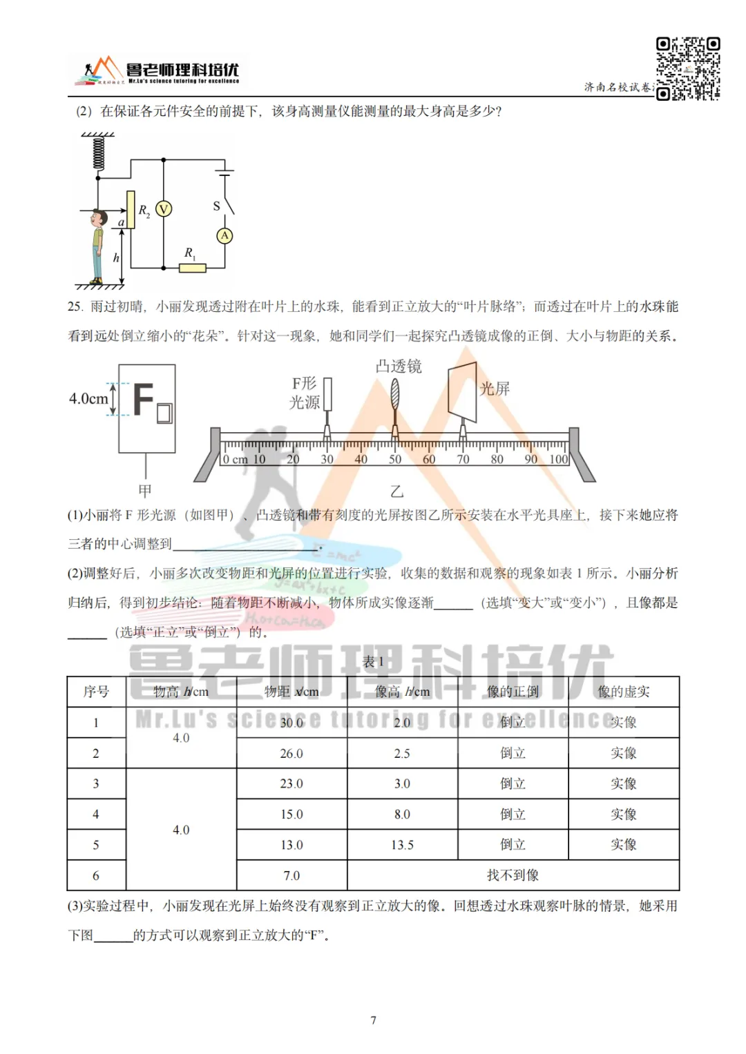 >育英中学模考物理试卷来啦!
