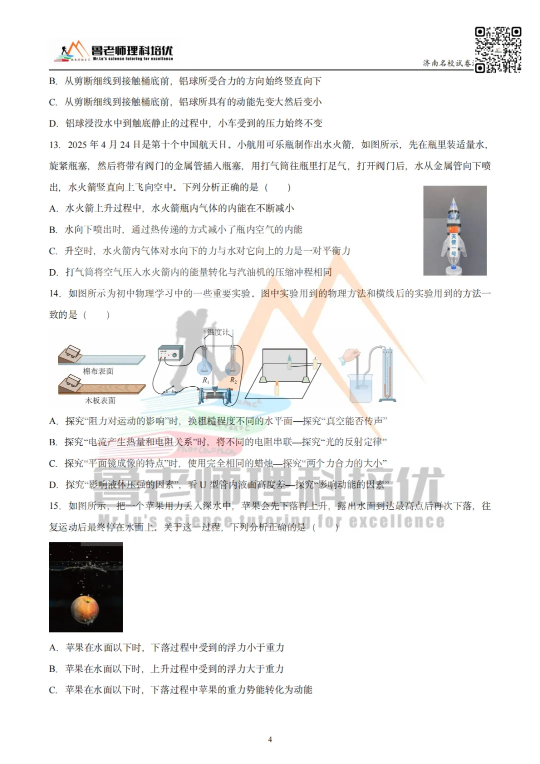 第14题,考察初中物理实验中涉及到的方法,大家都还清楚吗?