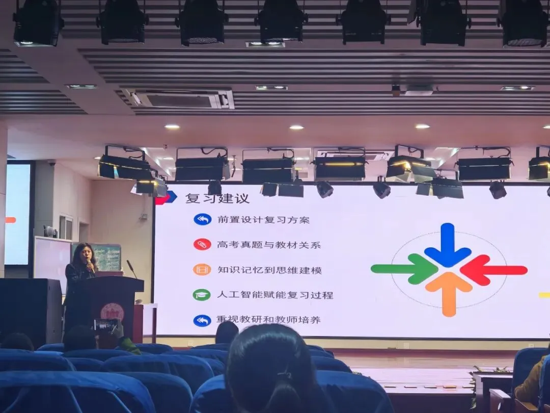 两场专题讲座紧随其后,两位骨干教师分别从客观题、语填与写作维度,对一模试卷进行全面剖析,并给出二轮复习精准建议,为参会教师赋能充电。