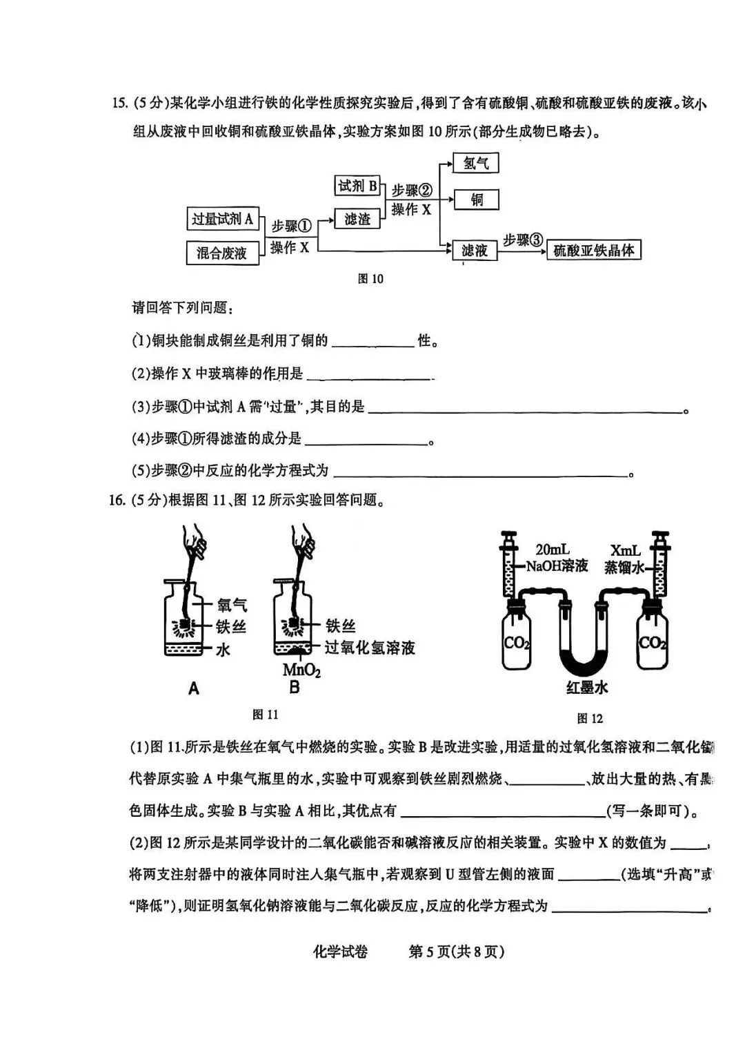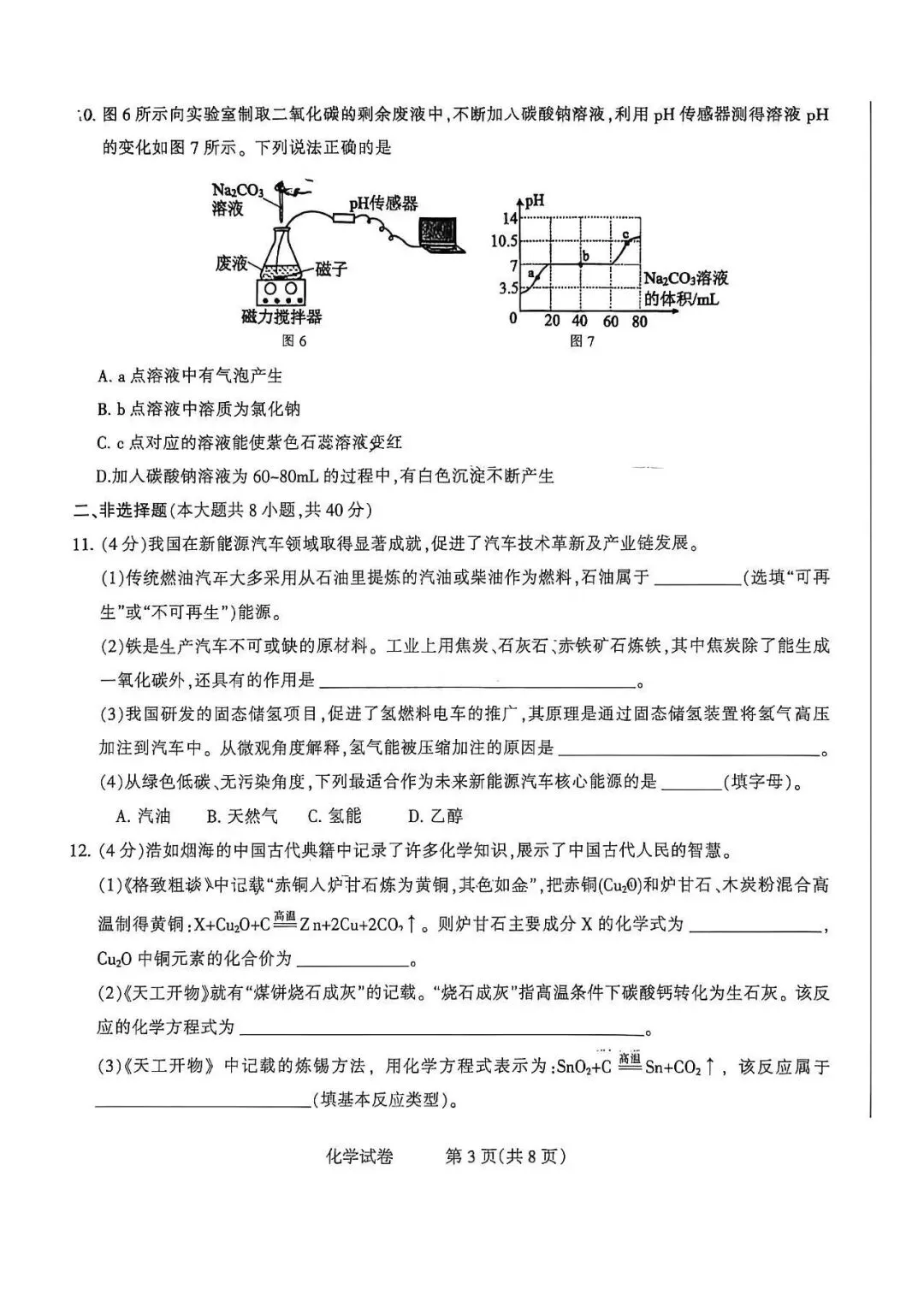 2026年3月石家庄48中九年级开学考化学试卷