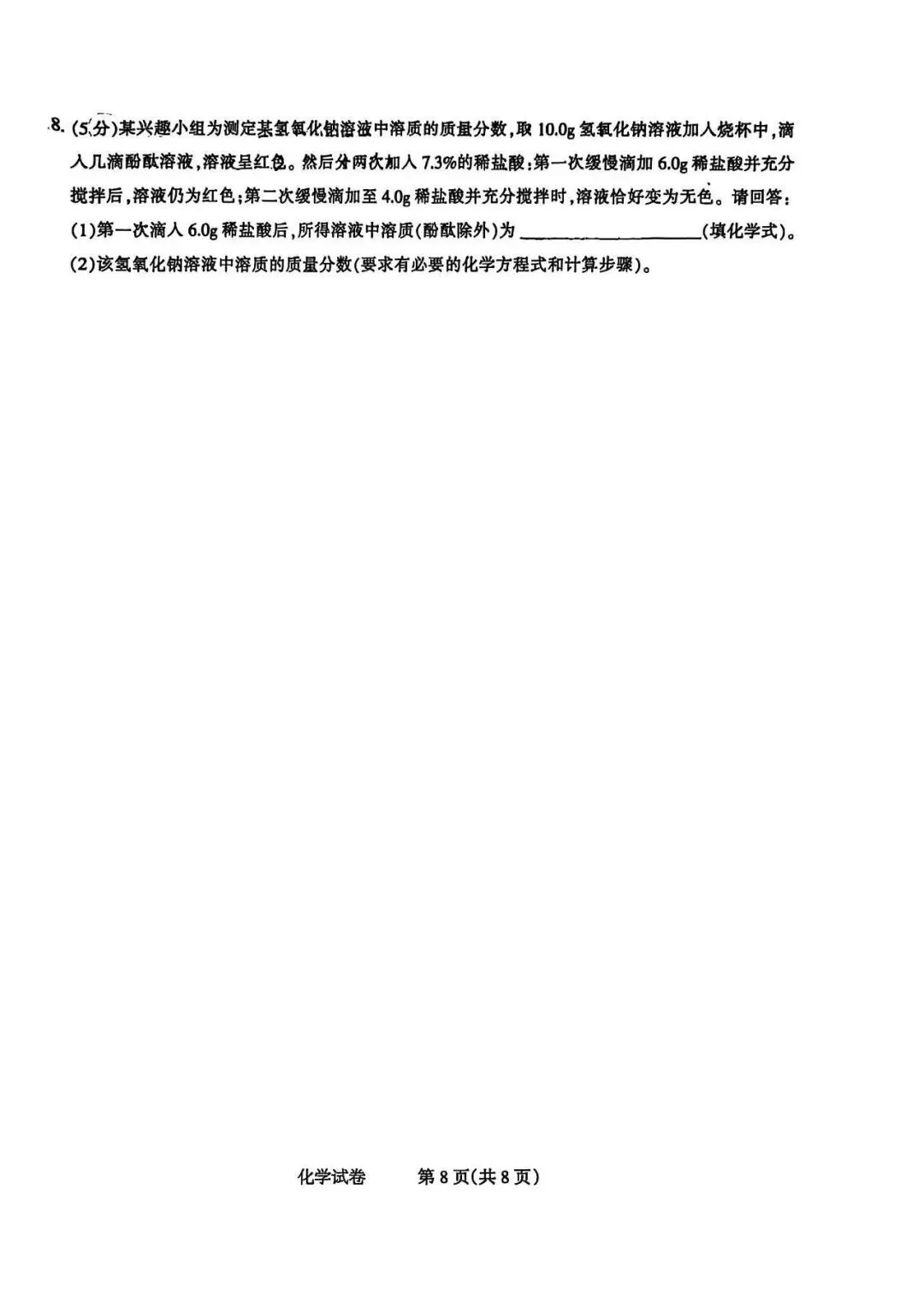 2026年河北省初中学业水平摸底考试化学试卷