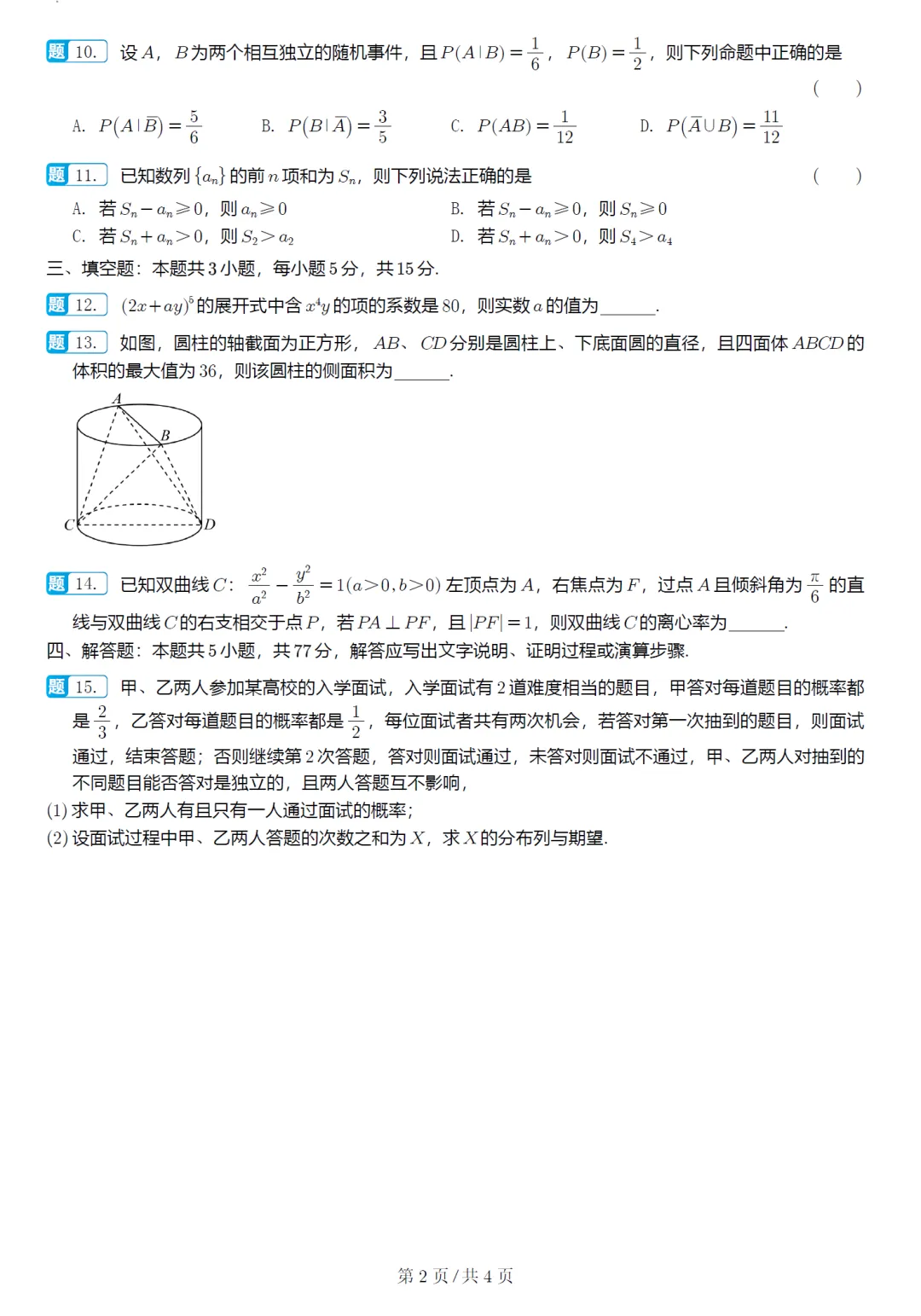 15.2025年8月河北省定州中学高三开学考数学试卷及全解析