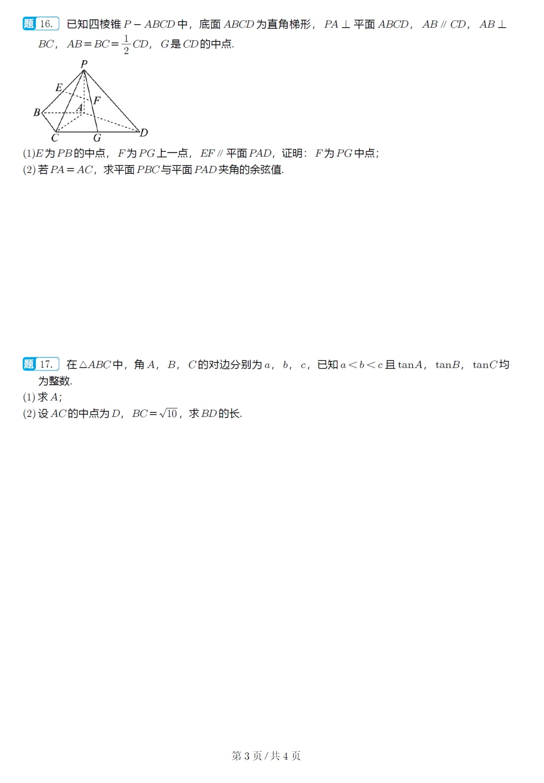 106.2026届广东湛江市10月调研数学试卷及逐题解析(2025.11)