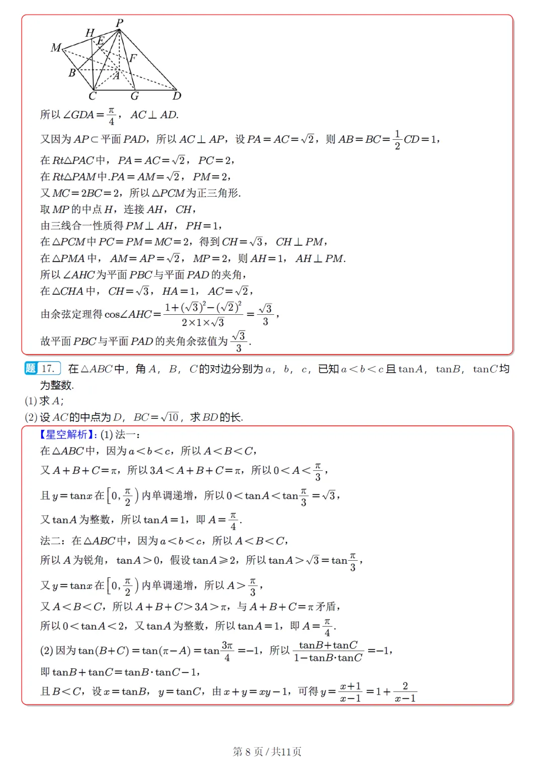 76.2026届湖南长沙一中10月高三数学试卷及全解析(2025.10)