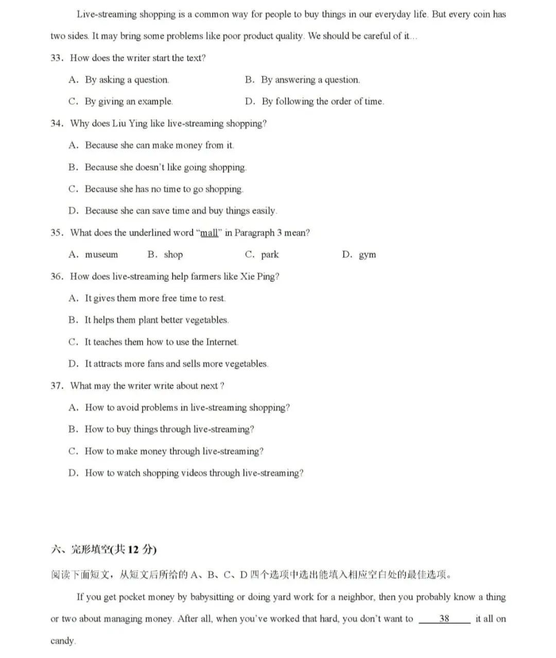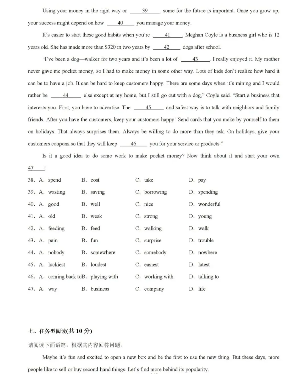 48. Because too many things may cause a mess in their lives./Because they can not only make some money but also protect the environment./Because the old things that they don't want may become others' treasure.