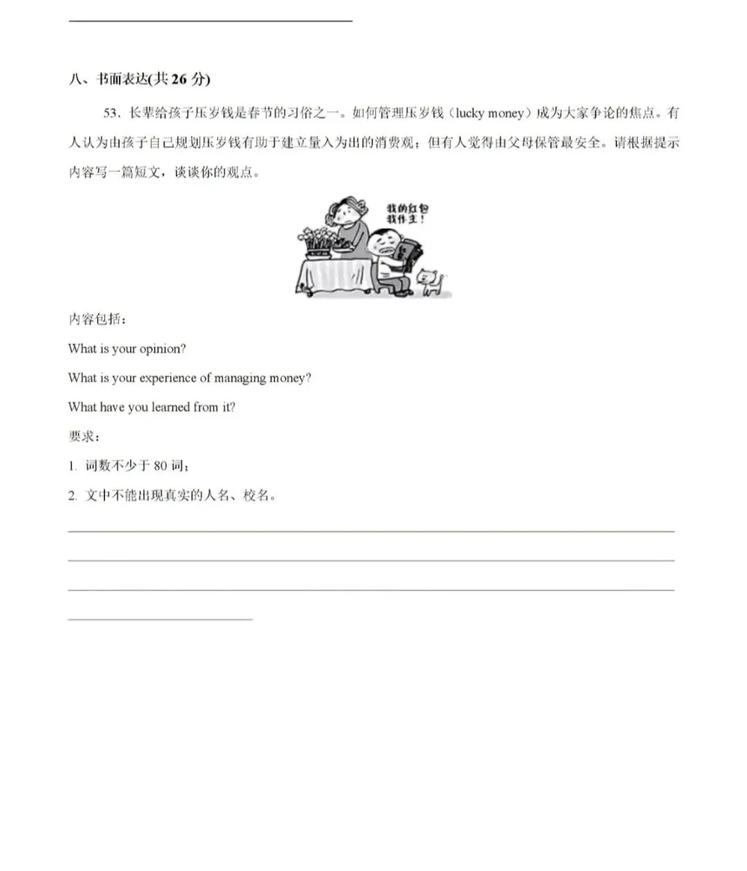 I think we children should be allowed to manage our own lucky money. It can not only improve our life skills but also help us deal with our own things independently.