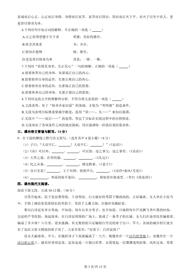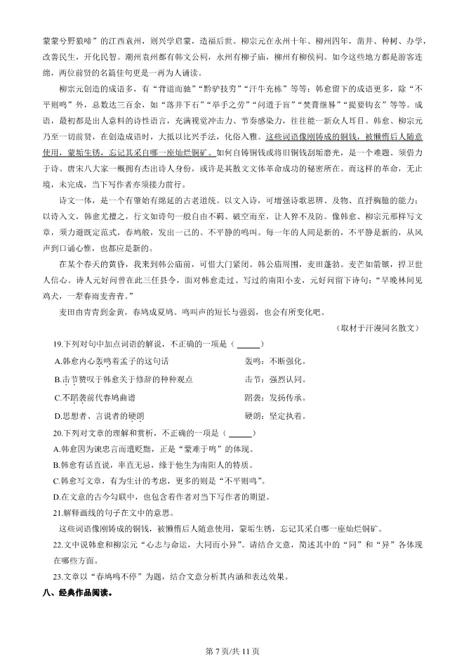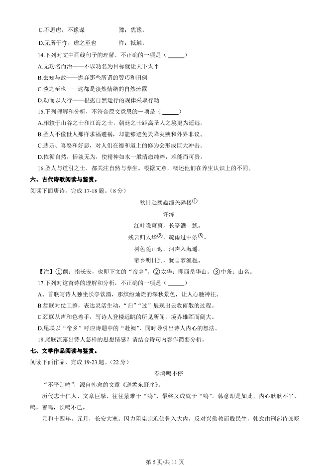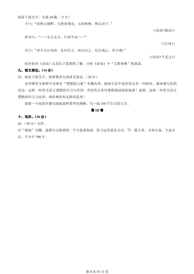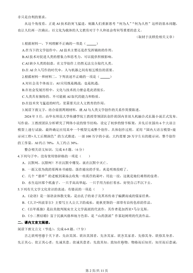 2025北京西城高二上册期末语文试卷(有答案) 电子版试卷获取,后台回复:试卷