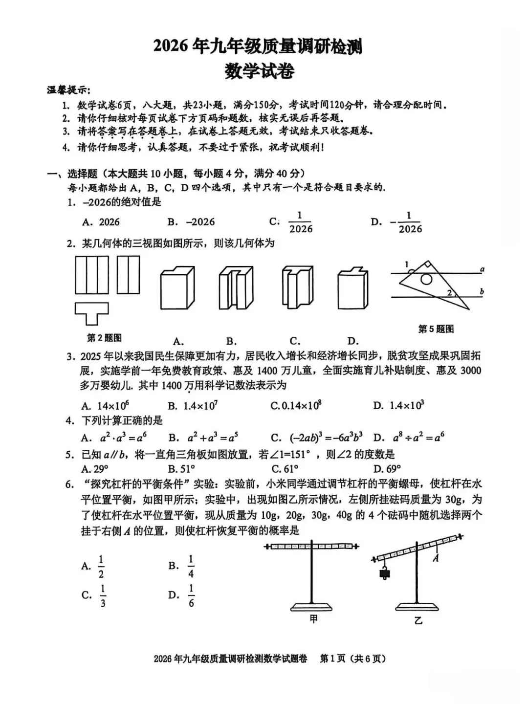 【近三年九年级中招模拟试卷】2023-2025年九年级数学中招模拟9套(可下载电子版)